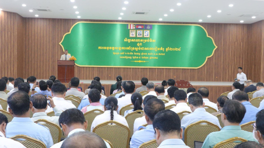 ការថ្លែងរបស់រដ្ឋមន្ត្រីក្រសួងអប់រំ យុវជន និងកីឡាបែបនេះ ធ្វើឡើងនា ពិធីបើកសិក្ខាសាលាតម្រង់ទិសស្តីពី “ការអនុវត្តយន្តការគាំទ្រស្តង់ដារ សាលារៀនគំរូ ឆ្នាំ២០២៤” នៅវិទ្យាស្ថានជាតិអប់រំ កាលពីព្រឹកថ្ងៃទី០៨ ខែមិថុនា ឆ្នាំ២០២៤ ដោយមានការ ចូលរួមពីសំណាក់ថ្នាក់ដឹកនាំក្រសួង មន្ត្រីមកពីអង្គភាពពាក់ព័ន្ធ អង្គភាពថ្នាក់កណ្តាល មន្ទីរអប់រំ យុវជន និងកីឡា រាជធានី ខេត្ត សរុបប្រមាណ ៥៥៥នាក់។