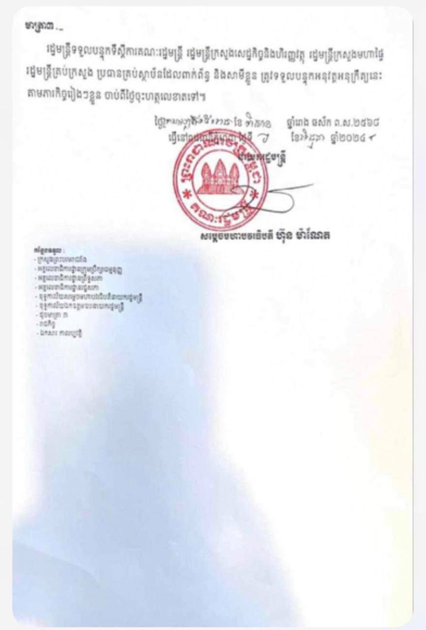 ខាងក្រោមនេះ ជាអនុក្រឹត្យរបស់សម្ដេចធិបតី ហ៊ុន ម៉ាណែត៖