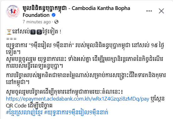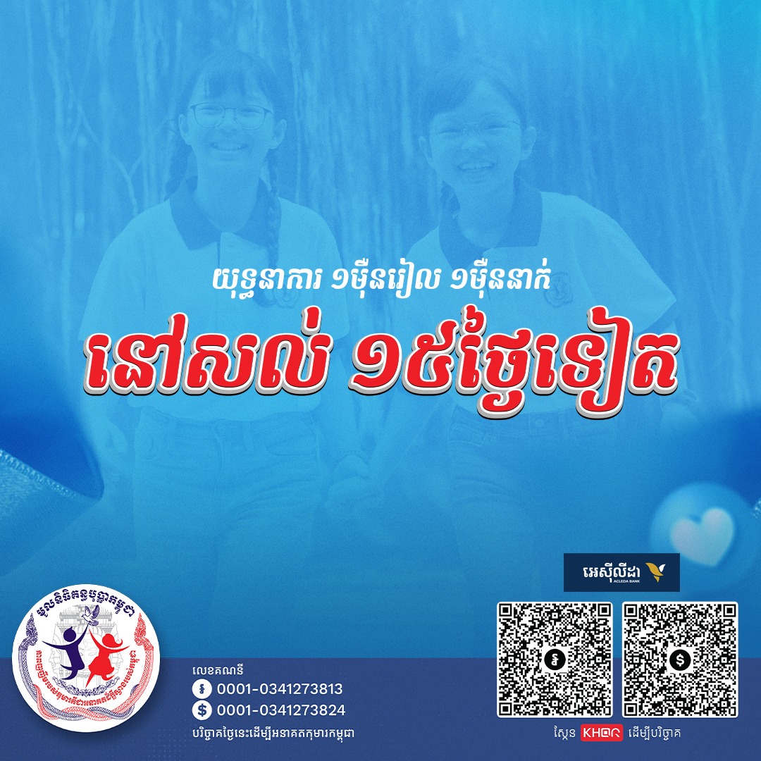 នៅសល់១៥ថ្ងៃទៀត! យុទ្ធនាការ “១ម៉ឺនរៀល ១ម៉ឺននាក់” របស់មូលនិធិគន្ធបុប្ផាកម្ពុជា នឹងត្រូវបិទបញ្ចប់