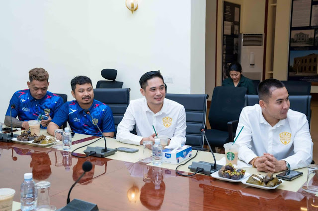 នៅព្រឹកថ្ងៃទី២៣ ខែមិថុនា ឆ្នាំ២០២៤ ឯកឧត្តម ម៉ៅ ធនិន អភិបាល នៃគណៈអភិបាលខេត្តកំពត បានអនុញ្ញាតឱ្យក្រុមកីឡាបាល់ទាត់តារាកម្ពុជា ដែលដឹកនាំដោយ លោក គី សុផល អ្នកសម្របសម្រួលក្រុមបាល់ទាត់តារាកម្ពុជា លោក ឈិន ឈឿន គ្រូបង្វឹកក្រុម ចូលជួបសម្ដែងការគួរសម និងពិភាក្សាការងារដើម្បីត្រៀមរៀបចំប្រកួតបាល់ទាត់មិត្តភាពរវាងក្រុមកីឡាបាល់ទាត់ថ្នាក់ដឹកនាំខេត្តកំពត ជាមួយក្រុមកីឡាបាល់ទាត់តារាកម្ពុជា ដែលការប្រកួតនេះនឹងធ្វើឡើងនៅថ្ងៃទី៧ ខែកក្កដា ឆ្នាំ២០២៤ខាងមុខនេះ ក្នុងបរិវេណកីឡដ្ឋានខេត្តកំពត។ ក្នុងជំនួបនេះ ឯកឧត្តម ម៉ៅ ធនិន អភិបាលខេត្តកំពត បានបង្ហាញការគាំទ្រចំពោះក្រុមកីឡាបាល់ទាត់តារាកម្ពុជា ដែលបានបង្កើតឱ្យមានព្រឹត្តិការណ៍ នៃការប្រកួតបាល់ទាត់មិត្តភាពរវាងថ្នាក់ដឹកនាំខេត្តកំពត និងក្រុមកីឡាបាល់ទាត់តារាកម្ពុជា ដើម្បីគាំទ្រដល់គម្រោងព្រែកជីកហ្វូណនតេជោ របស់រាជរដ្ឋាភិបាលកម្ពុជា។
