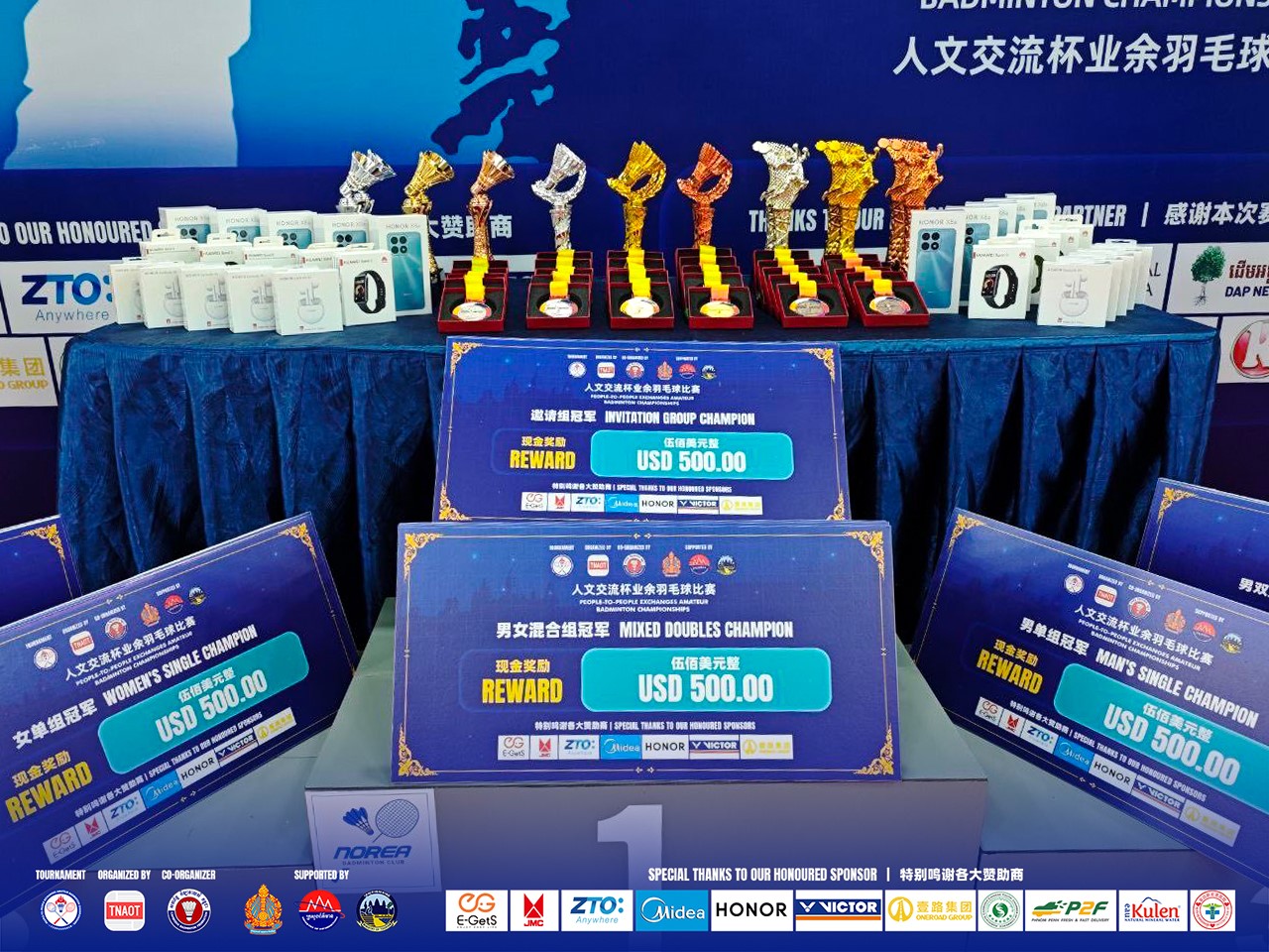 កម្មវិធីការប្រកួតវាយសីមិត្តភាព កម្ពុជា-ចិន មិនមែនអាជីព ក្រោមប្រធានបទ «People to People Exchange Amateur Badminton Champion 2024» រៀបចំឡើងដោយសារព័ត៌មានត្នោត និងសហពន្ធ័កីឡាវាយសីកម្ពុជា បានស្វែងរកឃើញជើងឯកជាម្ចាស់ជ័យលាភីហើយ ក្រោយការប្រកួតបែបមិត្តភាពដោយស្វិតស្វាញ និងបញ្ចប់ទៅដោយរលូន កាលពីល្ងាចថ្ងៃទី៧ ខែកក្កដា ឆ្នាំ២០២៤នេះ។