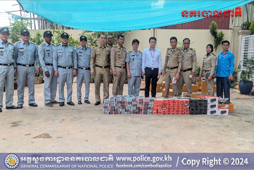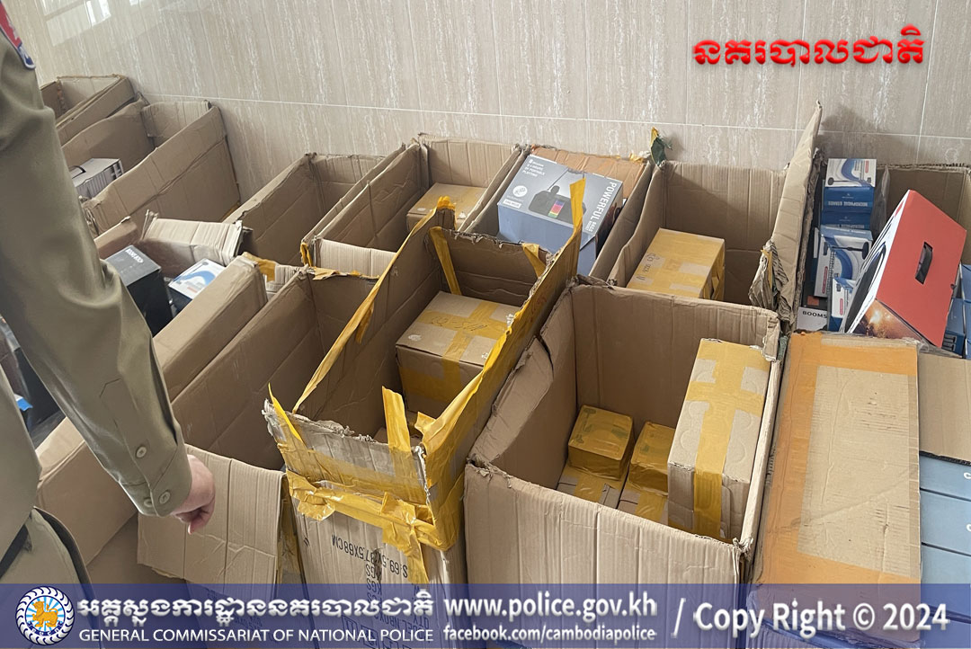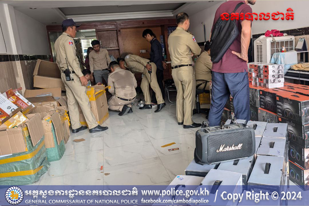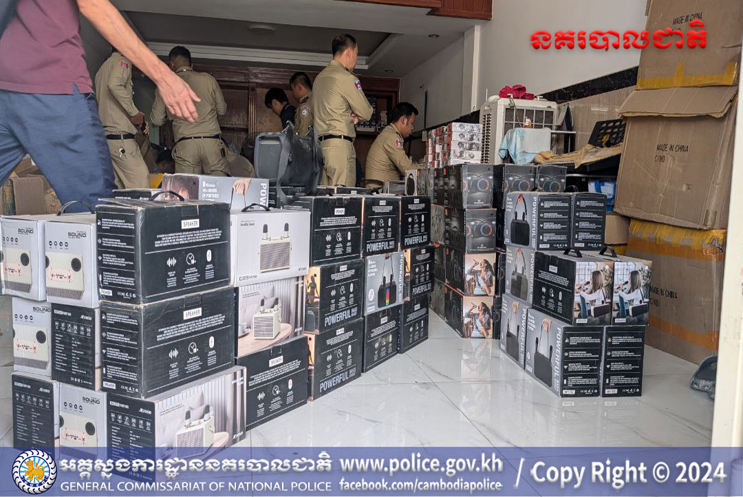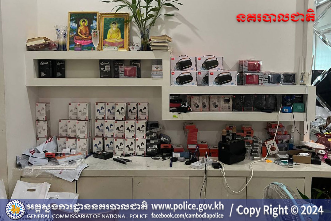 រាជធានីភ្នំពេញ៖ យោងតាមការចុះផ្សាយរបស់ អគ្គស្នងការដ្ឋាននគរបាលជាតិ បានឱ្យដឹងថា នៅថ្ងៃទី១១ ខែកក្កដា ឆ្នាំ២០២៤ សមត្ថកិច្ចនៃនាយកដ្ឋាននគរបាលប្រឆាំងបទល្មើសសេដ្ឋកិច្ច សហការជាមួយមន្រ្តី នៃអគ្គនាយកដ្ឋាន ក.ប.ប. សាខារាជធានីភ្នំពេញ ក្រោមការដឹកនាំសម្របសម្រួលនីតិវិធីដោយផ្ទាល់ពីលោក ស៊ីន រក្សា ព្រះរាជអាជ្ញារង នៃអយ្យការអមសាលាដំបូងរាជធានីភ្នំពេញ បានចុះបង្ក្រាបទីតាំង នាំចូល ស្តុក ចែកចាយ ឧបករណ៍បំពងសម្លេងម៉ាក JBL ក្លែងក្លាយ ចំនួន០២ទីតាំង ដែលទីតាំងទី១ ស្ថិតនៅផ្ទះលេខ E២៨ ផ្លូវ MK8 បុរីមង្គលភ្នំពេញ សង្កាត់ព្រែកលាប ខណ្ឌជ្រោយចង្វារ រាជធានីភ្នំពេញ។