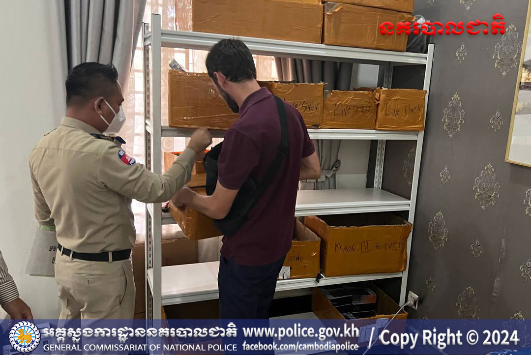 ជាលទ្ធផលសមត្ថកិច្ចចម្រុះបានរកឃើញសម្ភារសរុបរួមមាន៖ ឧបករណ៍បំពងសម្លេងម៉ាក JBL ចំនួន ១៣៦គ្រឿង , កាសស្តាប់ត្រចៀកចំនួន ៣១០គ្រឿង និងសម្បកប្រអប់កាសម៉ាក JBL ចំនួន ១២៨ប្រអប់ និងទីតាំងទី២ ស្ថិតនៅបុរីវារីណា ផ្ទះលេខ៨៩ ផ្លូវ២០១១ ផ្សារឈូកមាស សង្កាត់គោកឃ្លាង ខណ្ឌសែនសុខ រាជធានីភ្នំពេញ សមត្ថកិច្ចចម្រុះបានរកឃើញសម្ភារសរុបរួមមាន៖ ឧបករណ៍បំពងសម្លេងម៉ាក JBL និង Marshall ចំនួន ១១៦គ្រឿង , កាសស្តាប់ត្រចៀកចំនួន ៣២គ្រឿង និងស្ទីកគ័រម៉ាក JBL និង Marshall ចំនួន ៤៥៦សន្លឹក ។