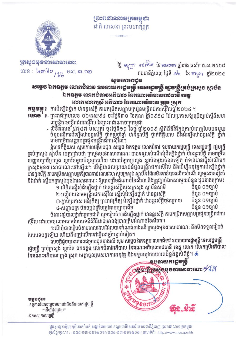 ក្រសួងមុខងារសាធារណៈ ជូនដំណឹងពីការដំឡើងថ្នាក់ ឋានន្តរស័ក្តិ តាមកម្រិតសញ្ញាបត្រ ជូនមន្ត្រីរាជការស៊ីវិល ឆ្នាំ២០២៤