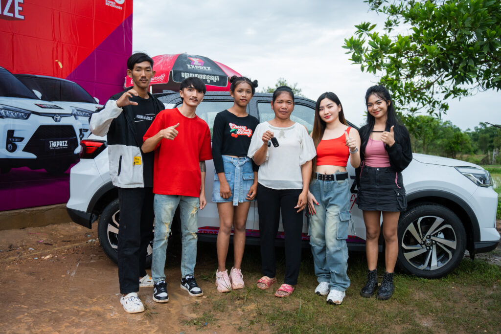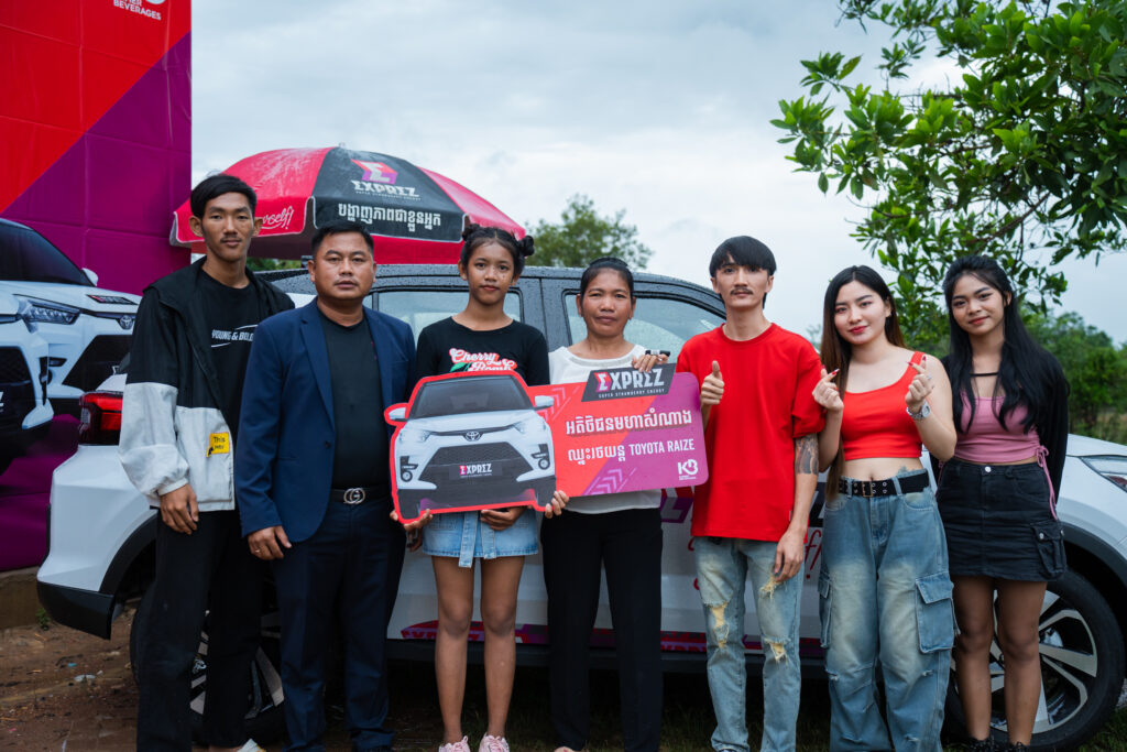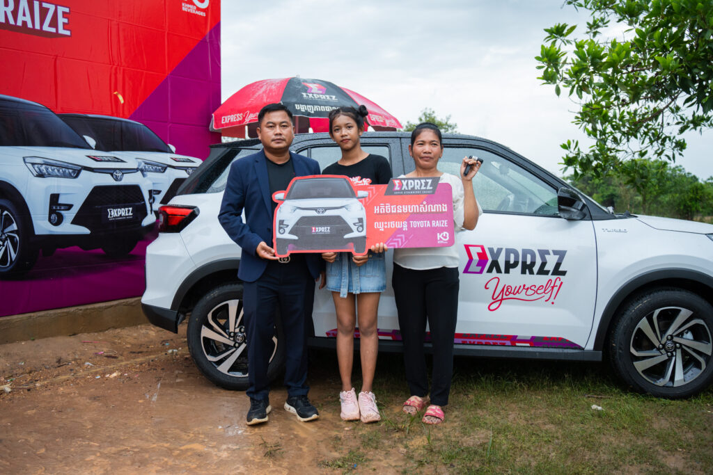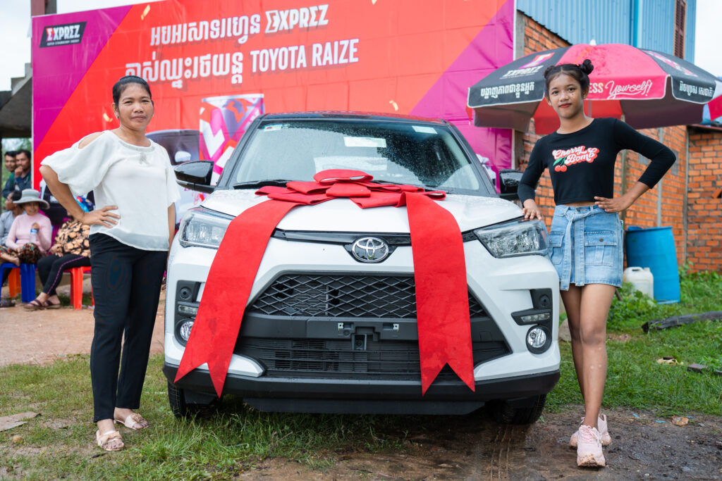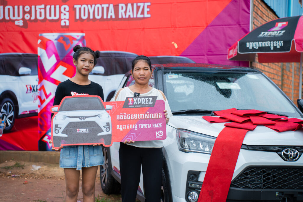 (ភ្នំពេញ)៖ កាត់ព្យុះ កាត់ភ្លៀង ជាអ្នកដែលសន្យា ប្រកាសក្ដែងៗថានឹងដឹកឡាន TOYOTA RAIZE ១គ្រឿង យកទៅឱ្យដល់ផ្ទះ ដូច្នេះបើទោះបីជាជួបឧបសគ្គបែបណាក៏ដោយ ក៏ត្រូវតែមកបំពេញពាក្យសន្យាតាមថ្ងៃដែលកំណត់ដែរ។ ប្អូនស្រី តាំ ដានិត អ្នកខេត្តកំពត បានត្រូវរង្វាន់រថយន្តស៊េរីថ្មី TOYOTA RAIZE មួយគ្រឿងពីភេសជ្ជៈ EXPREZ រសជាតិស្រ្តប៊ែរី ដែលគាត់បានទិញយកមកញ៉ាំ ដោយក្នុងចិត្តគិតថានឹងត្រូវរង្វាន់ទឹកប្រាក់ $1 ដូចប្អូនស្រីរបស់ខ្លួន។ តែផ្ទុយស្រឡះពីការគិត ស្រាប់តែគាស់ភ្លាមមក ឃើញរូបរថយន្ត TOYOTA RAIZE មួយគ្រឿងទៅវិញ។