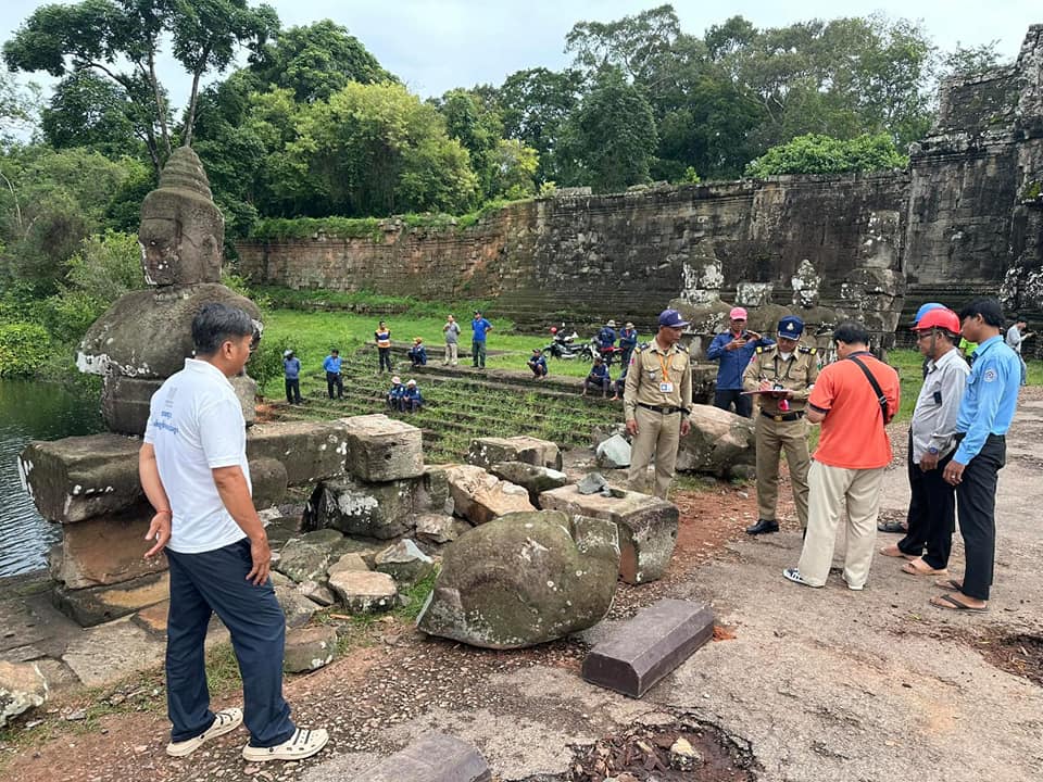 ខេត្តសៀមរាប៖ យោងតាមការចុះផ្សាយរបស់ នាយកដ្ឋាននគរបាលការពារបេតិកភណ្ឌ បានឱ្យដឹងថា កាលពីព្រឹកថ្ងៃទី២៤ ខែកក្កដា ឆ្នាំ២០២៤ កម្លាំងអង្គភាពនគរបាលការពារបេតិកភណ្ឌប្រចាំតំបន់អង្គរ បានសហការជាមួយភ្នាក់ងារជំនាញអាជ្ញាធរជាតិអប្សរា ចុះទៅខ្លោងទ្វារទន្លេអុំ ស្ថិតក្នុងភូមិត្រពាំងសេះ សង្កាត់គោកចក ក្នុងក្រុង/ខេត្តសៀមរាប។