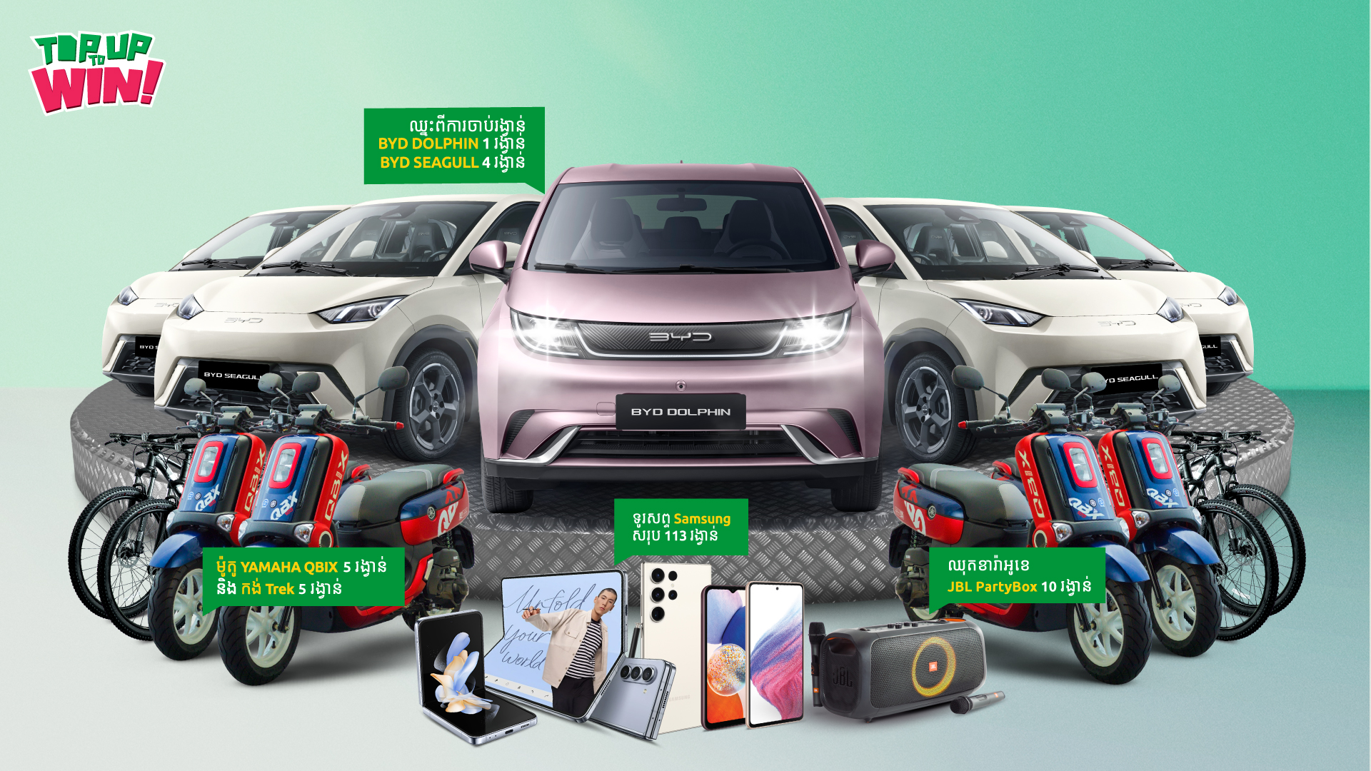 កាន់តែធំហើយពិសេសនោះគឺអតិថិជន Smart ដែលបញ្ចូលលុយកាន់តែច្រើន នឹងទទួលបានឱកាសកាន់តែច្រើនដើម្បីមានឈ្មោះចូលរួមក្នុងការចាប់រង្វាន់រថយន្ត BYD SEAGUL ចំនួន 1 គ្រឿងជារៀងរាល់ខែ ចាប់ពីខែកញ្ញានេះតទៅ និងរង្វាន់ធំរថយន្ត BYD DOLPHIN ចំនួន 1 គ្រឿង ដែលនឹងត្រូវចាប់រង្វាន់នាដើមឆ្នាំ 2025។
