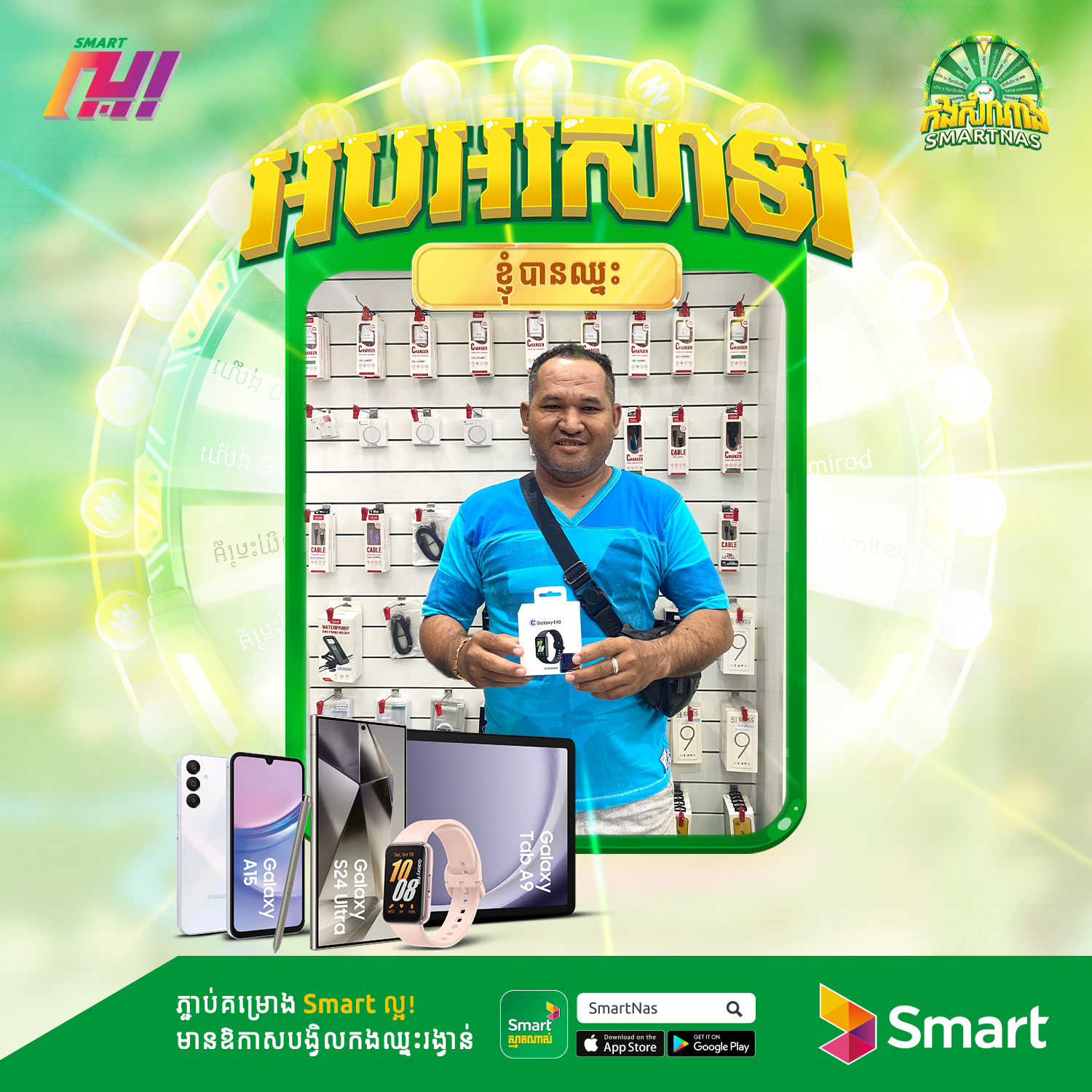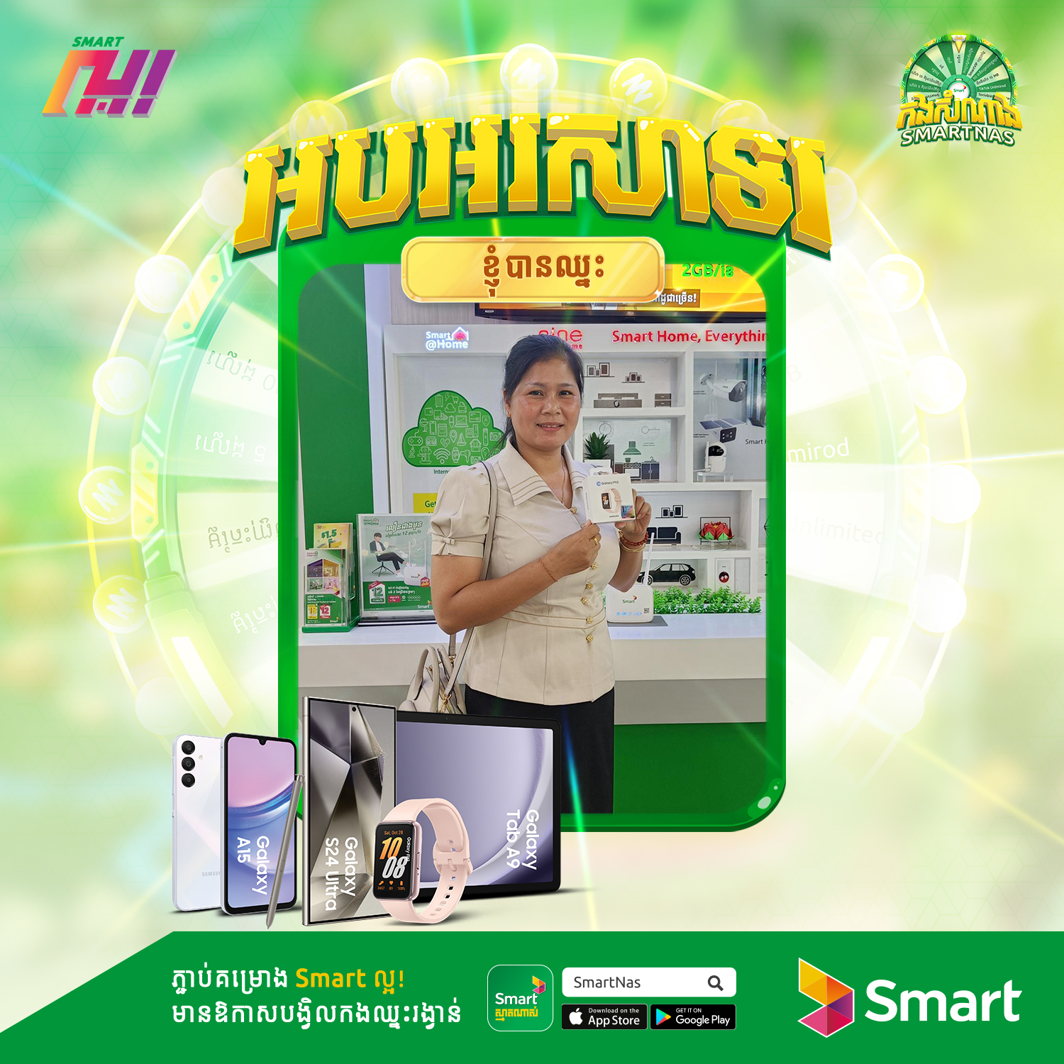 រូបភាពអតិថិជនដែលបានឈ្នះរង្វាន់ពីការភ្ជាប់គម្រោង Smart ល្អ! និងបង្វិលកងសំណាង SmartNas