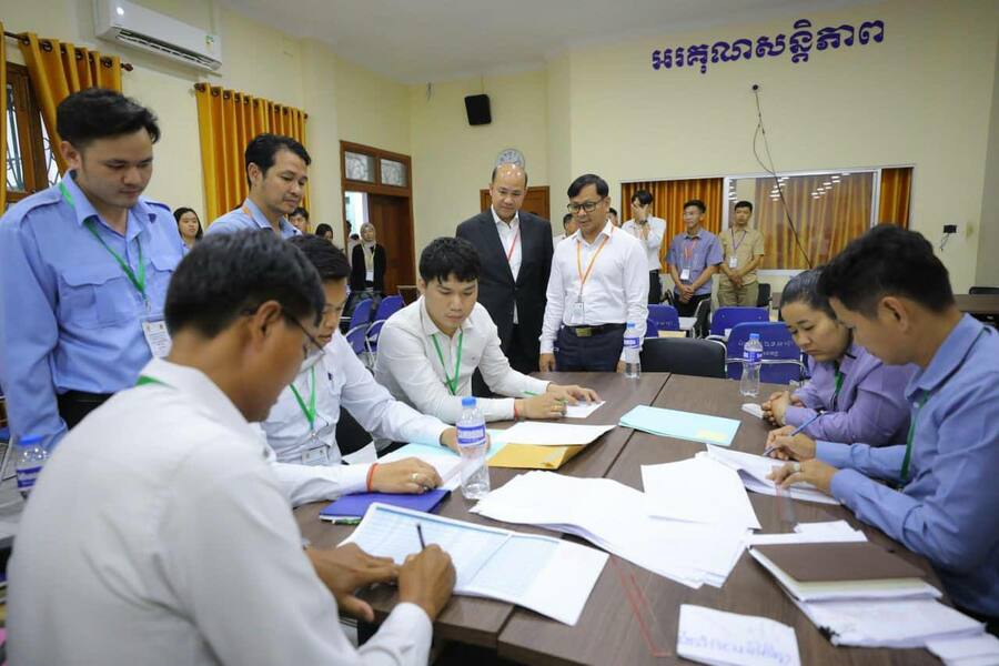 រាជធានីភ្នំពេញ៖ យោងតាមការចុះផ្សាយរបស់ ក្រសួងព័ត៌មាន បានឱ្យដឹងថា នៅរាត្រីថ្ងៃទី២៦ ខែកក្កដា ឆ្នាំ២០២៤នេះ គឺជាថ្ងៃប្រកាសលទ្ធផល នៃការប្រឡងប្រជែងជ្រើសរើស គ្រូបឋមដំណាក់កាលទី១ ក្រោមអធិបតីភាពឯកឧត្តម ហ៊ុន ម៉ានី រដ្ឋមន្ត្រីក្រសួងមុខងារសាធារណៈ និងជាប្រធានគណៈកម្មាការរៀបចំការប្រឡងប្រជែង និងសមាជិក សមាជិកានៃគណៈកម្មការ និងអនុគណៈកម្មការពាក់ព័ន្ធទាំងអស់ កំពុងមានវត្តមាននៅមណ្ឌលកំណែសាលាភូមិន្ទរដ្ឋបាល ដើម្បីពិនិត្យការផ្ទៀងផ្ទាត់ ដើម្បីសម្រេចលើលទ្ធផលជាប់ជាស្ថាពរ របស់បេក្ខជនប្រឡងប្រជែងជ្រើសរើសគ្រូបង្រៀននៅបឋមសិក្សា(វិញ្ញាសាសរសេរលើកទី១) ដើម្បីជ្រើសសម្រាំងបេក្ខជន។