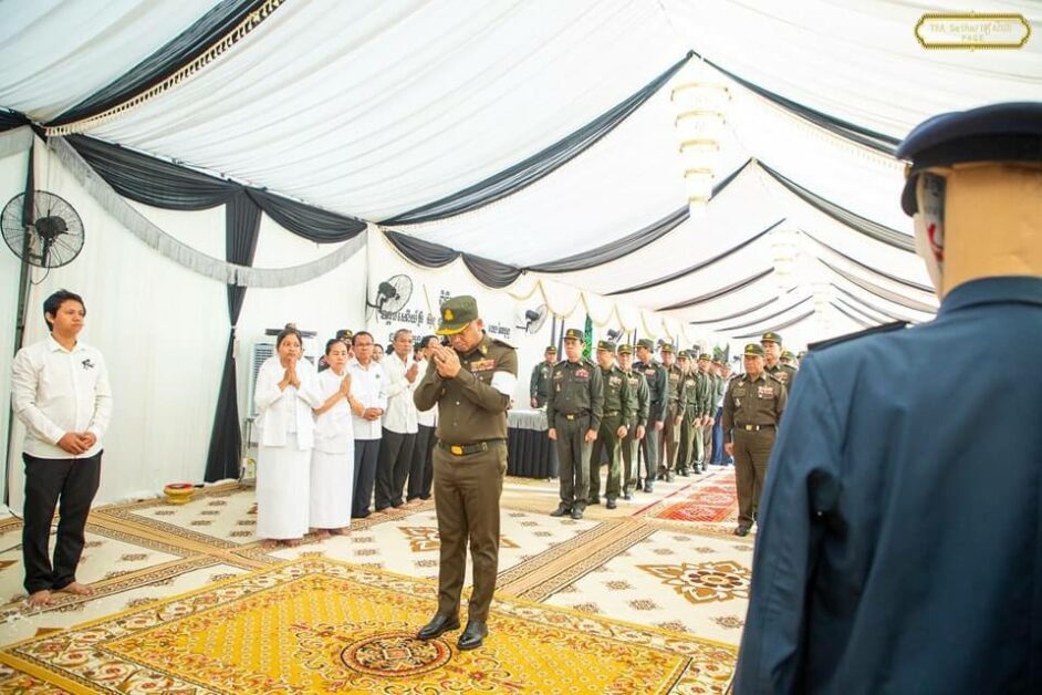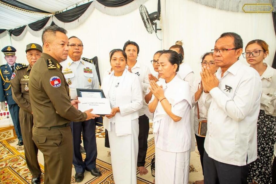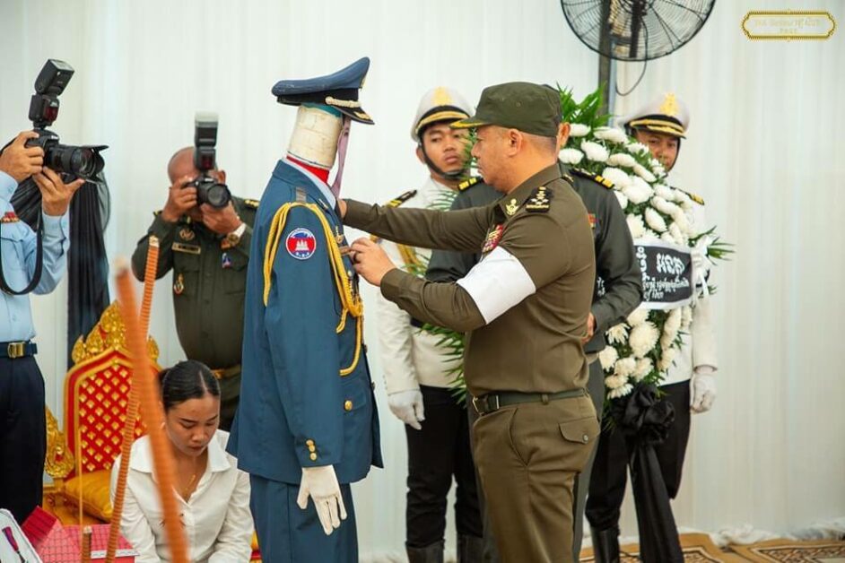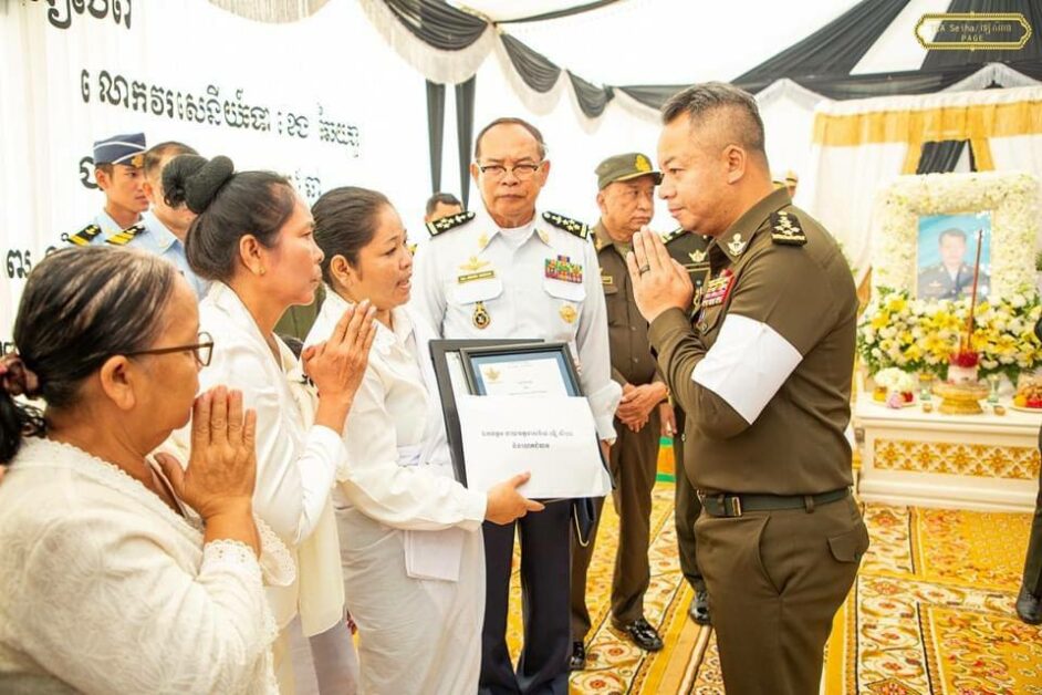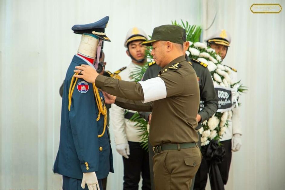 រាជធានីភ្នំពេញ៖ យោងតាមការចុះផ្សាយរបស់ ក្រសួងព័ត៌មាន បានឱ្យដឹងថា ឯកឧត្តម នាយឧត្តមសេនីយ៍ ទៀ សីហា ឧបនាយករដ្ឋមន្ត្រី និងជារដ្ឋមន្ត្រីក្រសួងការពារជាតិ នៅព្រឹកថ្ងៃទី២ ខែសីហានេះ បានអញ្ជើញ បំពាក់ឋានន្តរស័ក្តិជាកិច្ចបច្ឆាមរណៈ និងគោរពវិញ្ញាណក្ខន្ធសព អាកាសយានិកចំនួន ២រូប គឺឧត្តមសេនីយ៍ត្រី ស៊ុន ផល្លា នាយផ្នែកហោះហើរ កងហោះឧទ្ធម្ភាគចក្រ បញ្ជាការដ្ឋានកងទ័ព ជើងអាកាស និងវរសេនីយ៍ទោ ខេង ឆៃយុទ្ធ អាកាសយានិកកងហោះទី២ ផ្នែកហោះហើរ កងហោះឧទ្ធម្ភាគចក្រ បញ្ជាការដ្ឋានកងទ័ពជើងអាកាស ដែលបានពលីដោយជួបឧបទ្ទវហេតុធ្លាក់ឧទ្ធម្ភាគចក្រក្នុងអំឡុង ពេលបំពេញបេសកកម្មហោះហើរហ្វឹកហ្វឺន កាលពីថ្ងៃសុក្រ ៧កើត ខែអាសាឍ ឆ្នាំរោង ឆស័ក ព.ស.២៥៦៨ ត្រូវនឹងថ្ងៃទី១២ ខែកក្កដា ឆ្នាំ២០២៤។