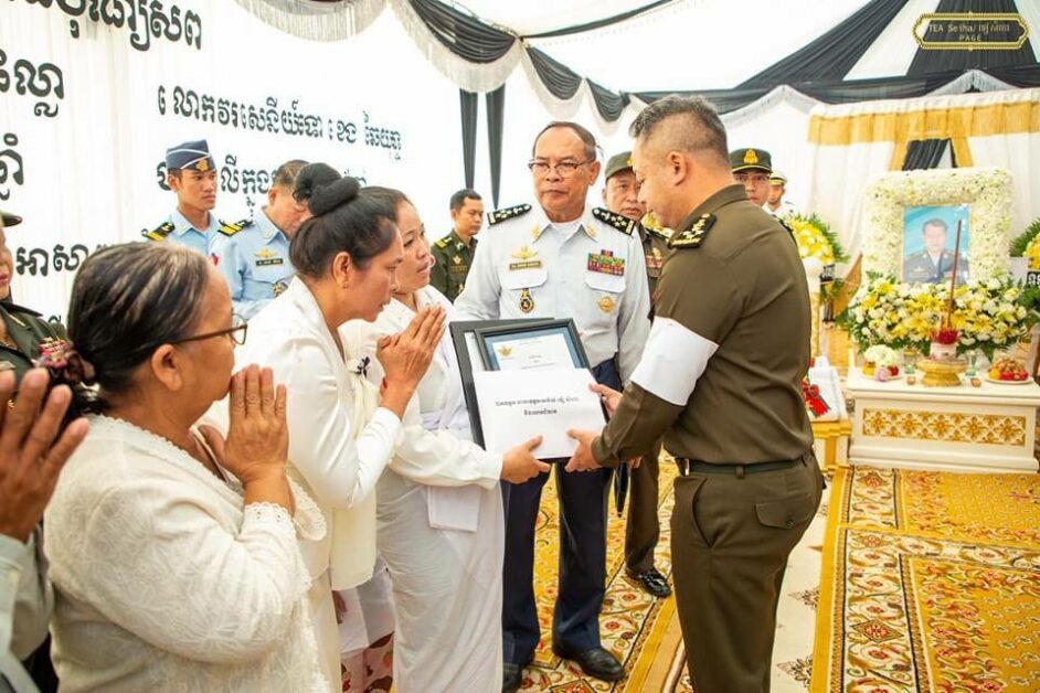 ប្រមុខការពារជាតិ អញ្ជើញបំពាក់ឋានន្តរស័ក្តិជាកិច្ចបច្ឆាមរណៈជូនអាកាសយានិក ២រូប ដែលជួបឧបទ្ទវហេតុធ្លាក់ឧទ្ធម្ភាគចក្រក្នុងអំឡុងពេលបំពេញបេសកកម្មហោះហើរ