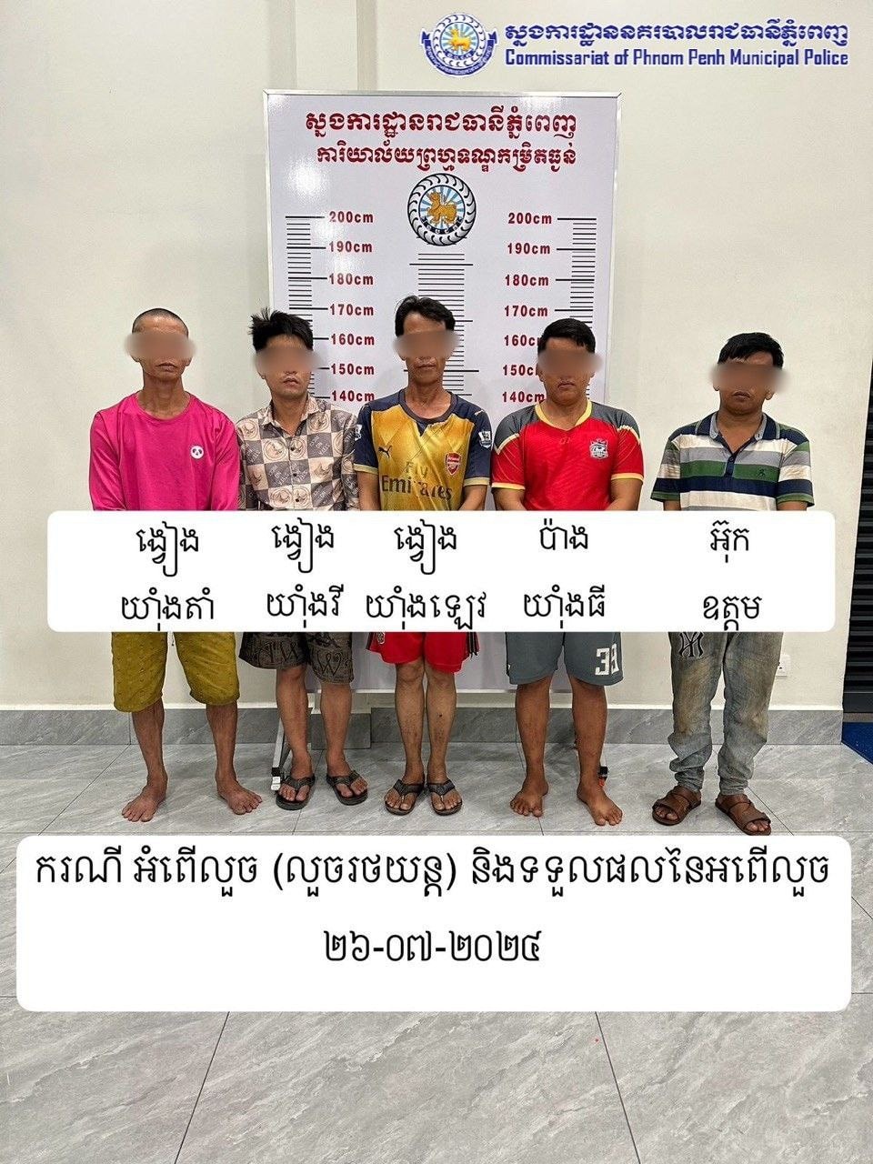 ឃាត់ខ្លួនជនសង្ស័យទាំង ០៥នាក់ មានឈ្មោះដូចខាងក្រោម៖