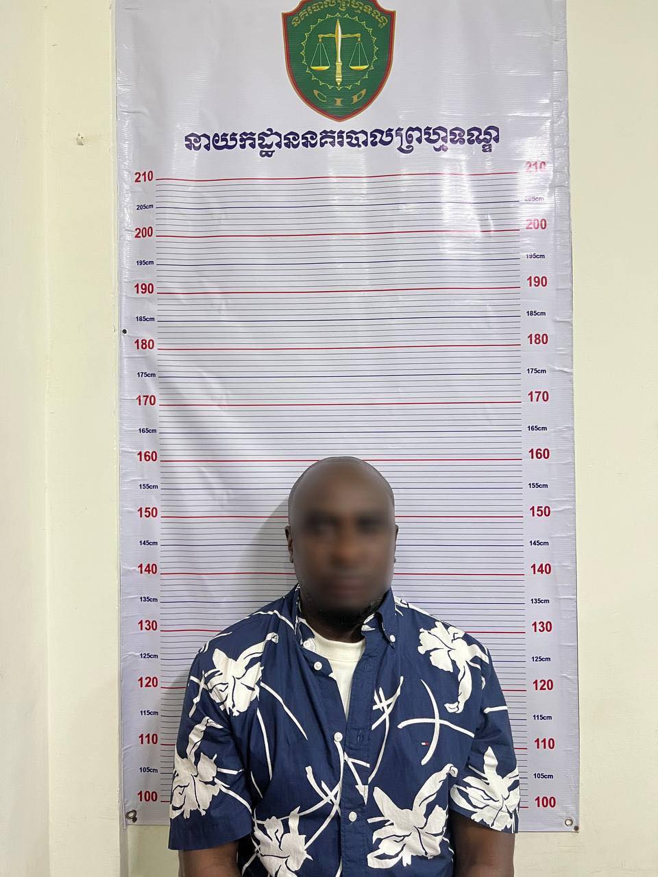 បន្ទាប់ពីទទួលពាក្យបណ្តឹងពីជនរងគ្រោះ ដោយអនុវត្តតាមបទបញ្ជារបស់ឯកឧត្តម ឧត្តមសេនីយ៍ឯក ង៉េង ជួ ប្រធាននាយកដ្ឋាននគរបាលព្រហ្មទណ្ឌ នៅថ្ងៃទី០៣ ខែសីហា ឆ្នាំ២០២៤ វេលាម៉ោង០៩៖៣០នាទី លោកឧត្តមសេនីយ៍ត្រី ខេង ម៉េងឈាង អនុប្រធាននាយកដ្ឋាន ដឹកនាំកម្លាំងជំនាញបានធ្វេីការស្រាវជ្រាវ ដោយធ្វើការកំណត់បានមុខសញ្ញា រហូតឈានដល់ការបង្រ្កាប និងឃាត់ខ្លួនជនសង្ស័យចំនួន០២នាក់ ឈ្មោះ SAM SIEH TATUS អាយុ៤៦ឆ្នាំ ជនជាតិលីបេរី និងឈ្មោះ PETER MANYOUGAR ភេទប្រុស អាយុ៥១ឆ្នាំ ជនជាតិលីបេរី នៅចំណុចបណ្តោយផ្លូវ១០៦ សង្កាត់ស្រះចក ខណ្ឌដូនពេញ រាជធានីភ្នំពេញ។