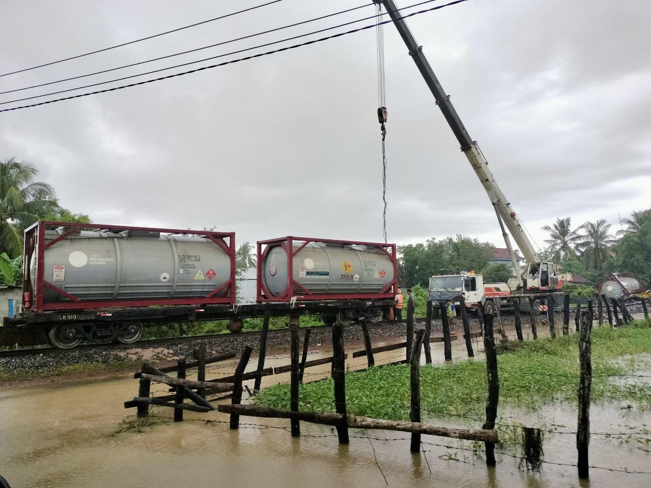 គួរបញ្ជាក់ថា នៅវេលាម៉ោង៤ និង៣០នាទីព្រឹក ថ្ងៃទី៤ ខែសីហា ឆ្នាំ២០២៤ រថភ្លើងមួយខ្សែចេញដំណើរពីបាត់ដំបងឆ្ពោះទៅកាន់រាជធានីភ្នំពេញ បានជួបឧប្បត្តិហេតុធ្លាក់ទូដឹកប្រេងឥន្ធនៈចេញពីដែករ៉ៃ លើផ្លូវដែកភាគខាងជើងចំណុចPK-123+350 ស្ថិតក្នុងភូមិកប៉ាស់ ឃុំឈើតុំ ស្រុកក្រគរ ខេត្តពោធិ៍សាត់ ចំនួន៦ទូ(ទូទទេ)មិនបណ្តាលឲ្យរងគ្រោះថ្នាក់ដល់អ្នកបើកបរ អ្នកធ្វើដំណើរ និងប្រជាពលរដ្ឋរស់នៅតាមដងផ្លូវដែកឡើយ៕