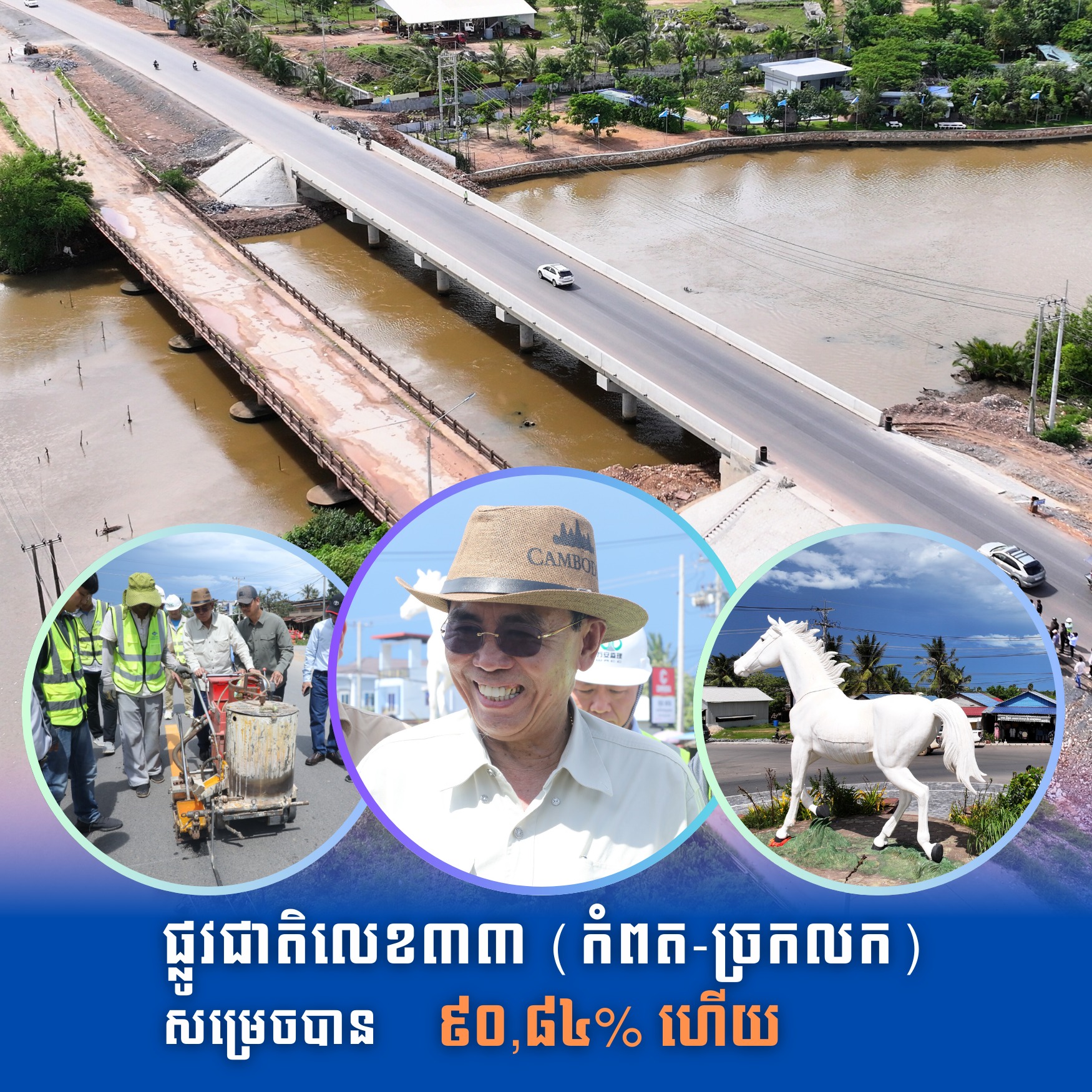 គួររម្លឹកផងដែរថា៖ គម្រោងពង្រីក និងលើកកម្រិតគុណភាពផ្លូវជាតិលេខ៣៣ ត្រូវបានប្រកាសបើកការដ្ឋានជាផ្លូវការ កាលពីថ្ងៃទី៣០ ខែធ្នូ ឆ្នាំ២០២២។ គម្រោងនេះមានប្រវែងប្រមាណ ៥២,៥៧ គីឡូម៉ែត្រ តភ្ជាប់ពីខេត្តកំពត (បំបែកពីផ្លូវជាតិលេខ៣ ត្រង់ចំណុចគ.ម១៤៨+១០០) ទៅកាន់ច្រកលក (ព្រំដែនកម្ពុជា-វៀតណាម) ឆ្លងកាត់ភូមិសាស្រ្ត ស្រុកទឹកឈូ និងស្រុកកំពង់ត្រាច នៃខេត្តកំពត ហើយឆ្លងកាត់ភូមិសាស្រ្ត ក្រុងកែប និងស្រុកដំណាក់ចង្អើរ នៃខេត្តកែប គ្រប់គ្រងដោយ ក្រសួងសាធារណការ និងដឹកជញ្ជូន៕