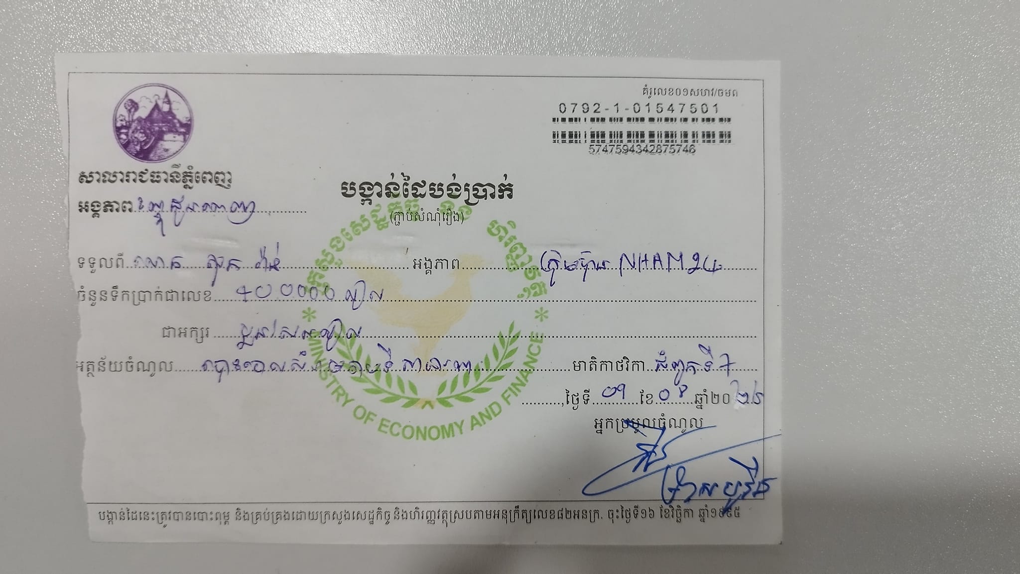 ២-ផាកពិន័យគាត់ជាទឹកប្រាក់ចំនួន ៤០០,០០០រៀល ដោយយោងតាមមាត្រាទី៤២ ជំពូកទី៧ នៃអនុក្រឹត្យលេខ ១១៣ អនក្រ.បក របស់ក្រសួងបរិស្ថាន ៕