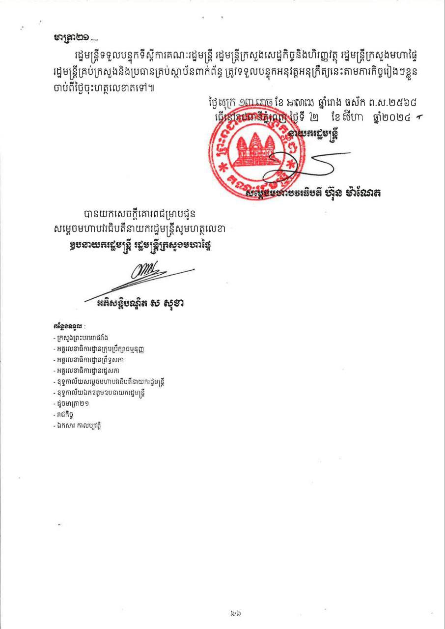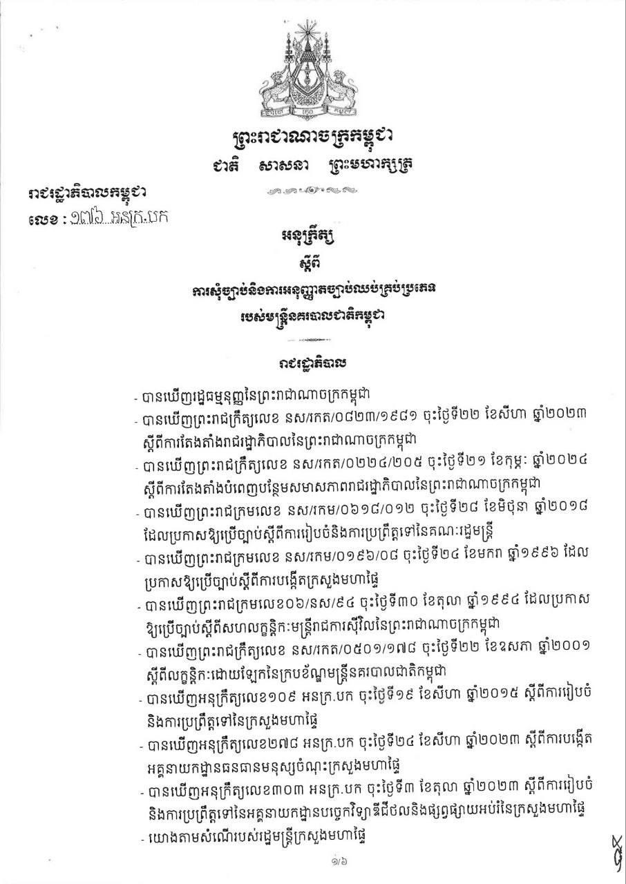 ខាងក្រោមនេះជាអនុក្រឹត្យ៖