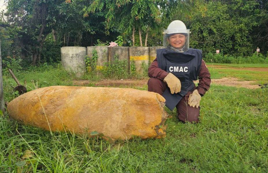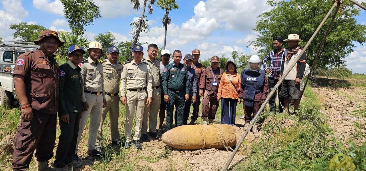 កម្លាំងជំនាញស៊ីម៉ាក់ រកឃើញគ្រាប់បែកប្រភេទM117 ទម្ងន់ ៣៤០គីឡូក្រាម ដែលកប់នៅវាលស្រែ ក្នុងខេត្តកណ្តាល
