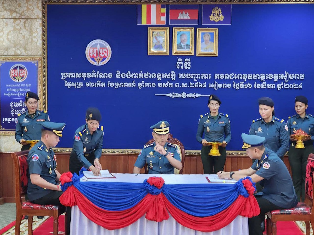 ខេត្តសៀមរាប៖ យោងតាមការចុះផ្សាយរបស់ ក្រសួងព័ត៌មាន បានឱ្យដឹងថា ឯកឧត្តម នាយឧត្តមសេនីយ៍ សៅ សុខា អគ្គមេបញ្ជាការរងកងយោធពលខេមរភូមិន្ទ និងជាមេបញ្ជាការកងរាជអាវុធហត្ថលើផ្ទៃប្រទេស បានអញ្ជើញប្រកាសមុខតំណែង លោកឧត្តមសេនីយ៍ត្រី សៀ ទីន ជាមេបញ្ជាការ បញ្ជាការដ្ឋានកងរាជអាវុធហត្ថខេត្តសៀមរាប នាព្រឹកថ្ងៃសុក្រ ទី១៦ ខែសីហា ឆ្នាំ២០២៤។