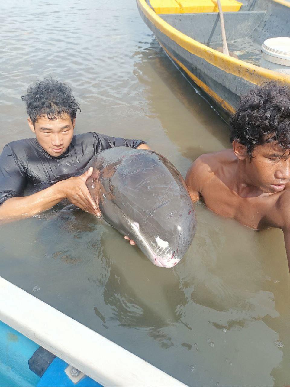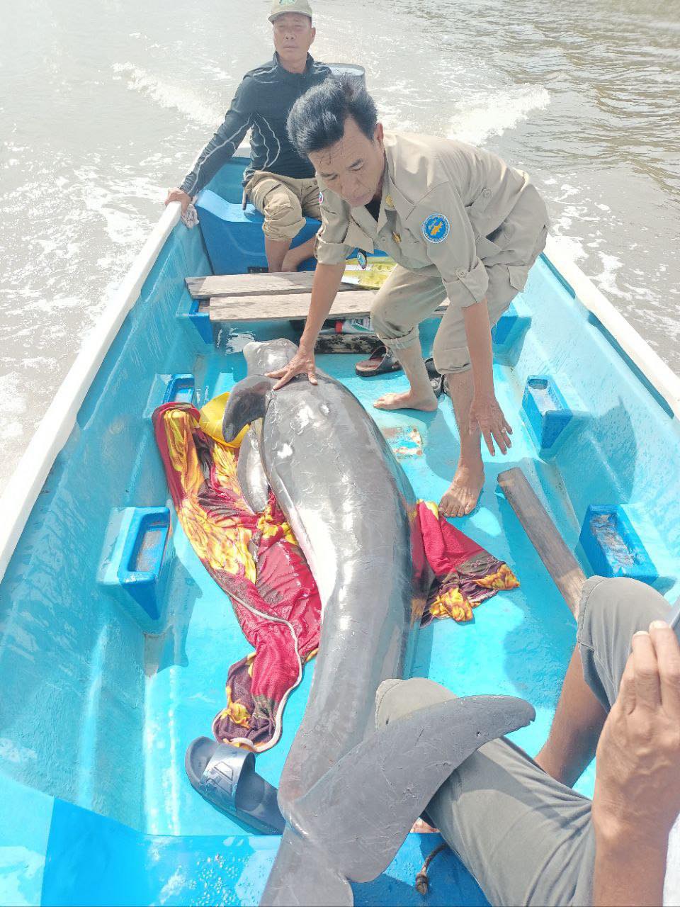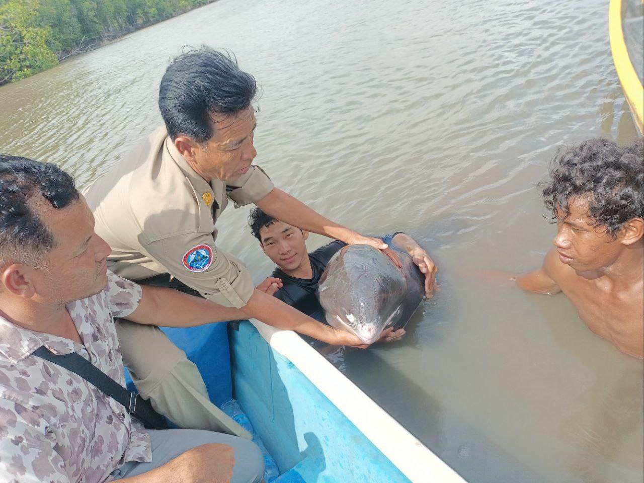 ផ្សោត១ក្បាលទម្ងន់ប្រមាណ ១២០គីឡូក្រាម ដែលជាប់នឹងឬសកោងកាងនៅស្រុកមណ្ឌលសីមា ត្រូវបានជួយសង្គ្រោះ