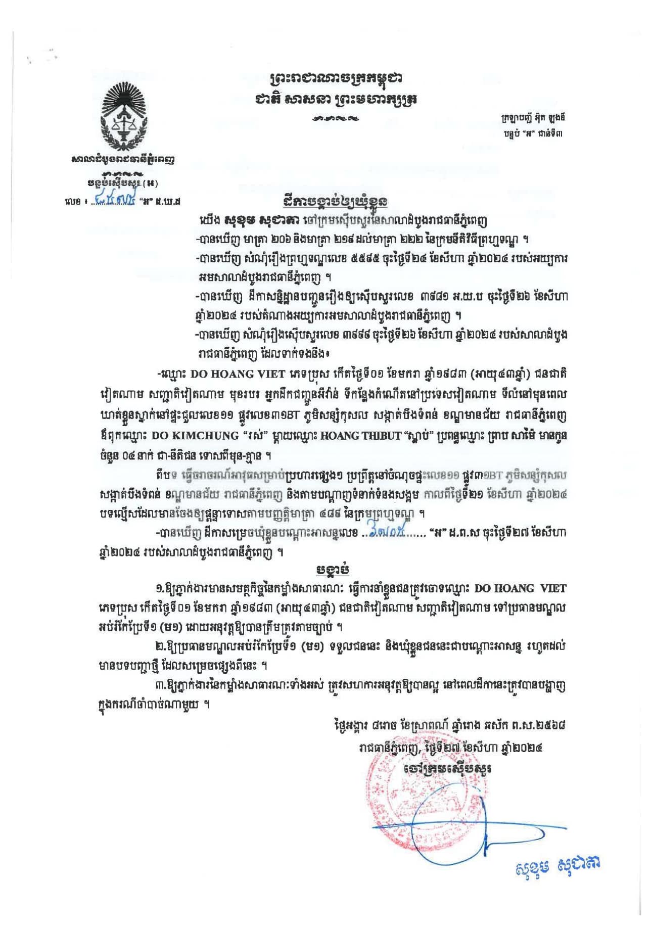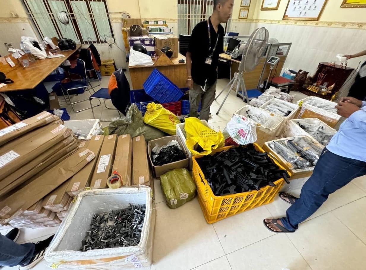 រាជធានីភ្នំពេញ៖ យោងតាមការចុះផ្សាយរបស់ អគ្គស្នងការដ្ឋាននគរបាលជាតិ បានឱ្យដឹងថា ដោយអនុវត្តតាមបញ្ជាផ្ទាល់របស់ ឯកឧត្តម នាយឧត្តមសេនីយ៍ ស ថេត អគ្គស្នងការនគរបាលជាតិ កាលពីថ្ងៃទី២២ ខែសីហា ឆ្នាំ២០២៤ ក្រុមការងារ Hotline Scam 24/7 របស់អគ្គស្នងការដ្ឋាននគរបាលជាតិ បានបើកការស្រាវជ្រាវលើទំព័រហ្វេសប៊ុកឈ្មោះ D-Store ដែលបានបង្ហោះផ្សព្វផ្សាយលក់អាវុធជំពាមកែច្នៃបាញ់គ្រាប់ដែកតាមបណ្តាញសង្គម និងឈានទៅដល់ការចុះបង្រ្កាបទីតាំងរក្សាទុក និងចែកចាយអាវុធកែច្នៃប្រភេទនេះ នៅទីតាំងមួយកន្លែងស្ថិតនៅ ផ្ទះលេខ១១ ផ្លូវ៣១BT សង្កាត់បឹងទំពុន ខណ្ឌមានជ័យ រាជធានីភ្នំពេញ ព្រមទាំងធ្វើការឃាត់ខ្លួនជនសង្ស័យម្នាក់ដែលជាម្ចាស់ក្រុមហ៊ុន CamShip Express ឈ្មោះ Do Hoang Viet ភេទប្រុស អាយុ៤១ឆ្នាំ ជនជាតិវៀតណាម ដើម្បីយកមកសាកសួរនៅ អគ្គស្នងការដ្ឋាននគរបាលជាតិ។