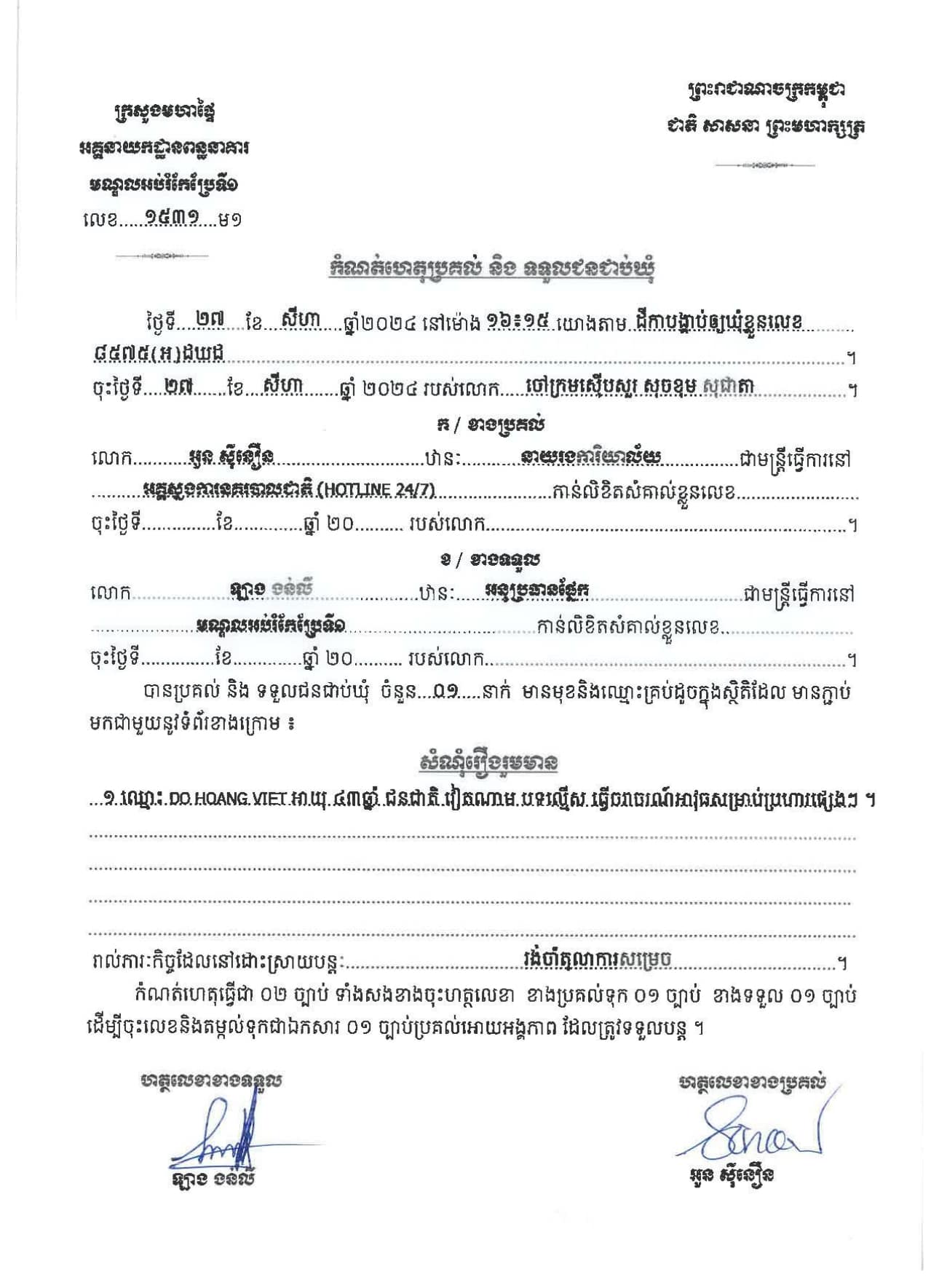 ក្រុមការងារ Hotline Scam 24/7 នៃអគ្គស្នងការដ្ឋាននគរបាលជាតិ សូមធ្វើការអំពាវនាវដល់ប្រជាពលរដ្ឋ ដល់ប្រជាពលរដ្ឋបញ្ឈប់នូវការផ្សព្វផ្សាយ និងធ្វើអាជីវកម្មទិញ-លក់ អាវុធកែច្នៃផ្សេងៗតាមបណ្តាញសង្គមគ្រប់ប្រភេទ ដែលបង្កអសន្តិសុខដល់សង្គម និងអាយុជីវិតមនុស្ស។