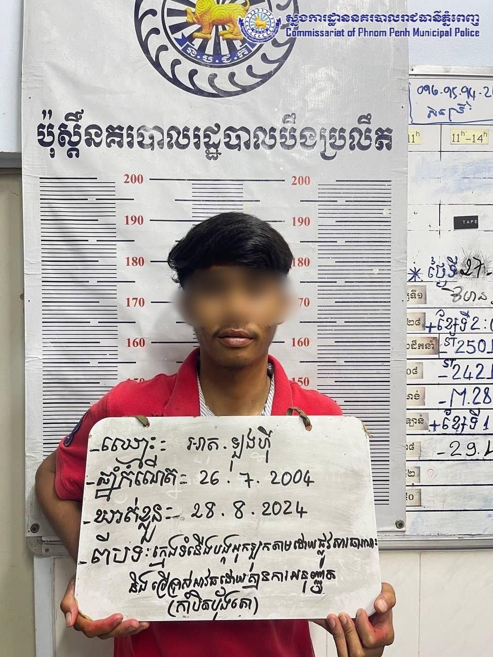 រាជធានីភ្នំពេញ៖ យោងតាមការចុះផ្សាយរបស់ ក្រុមការងារព័ត៌មាន និងប្រតិកម្មរហ័ស នៃស្នងការដ្ឋាននគរបាលរាជធានីភ្នំពេញ បានឱ្យដឹងថា នៅថ្ងៃទី២៨ ខែសីហា ឆ្នាំ២០២៤ វេលាម៉ោង០២៖៣០នាទី កម្លាំងប៉ុស្តិ៍នគរបាលរដ្ឋបាលវាលវង់ បានធ្វើការឃាត់ក្មេងទំនើង ចំនួន០៥នាក់ ពាក់ព័ន្ធករណីបង្កអុកឡុកតាមដងផ្លូវសាធារណៈ និងកាន់កាប់អាវុធខុសច្បាប់ ដោយគ្មានការអនុញ្ញាត ( កាំបិតបុ័ងតោ) ឃាត់ខ្លួននៅចំណុចផ្ទះលេខ ផ្លូវលេខ១១៣ សង្កាត់បឹងព្រលឹត ខណ្ឌ៧មករា។