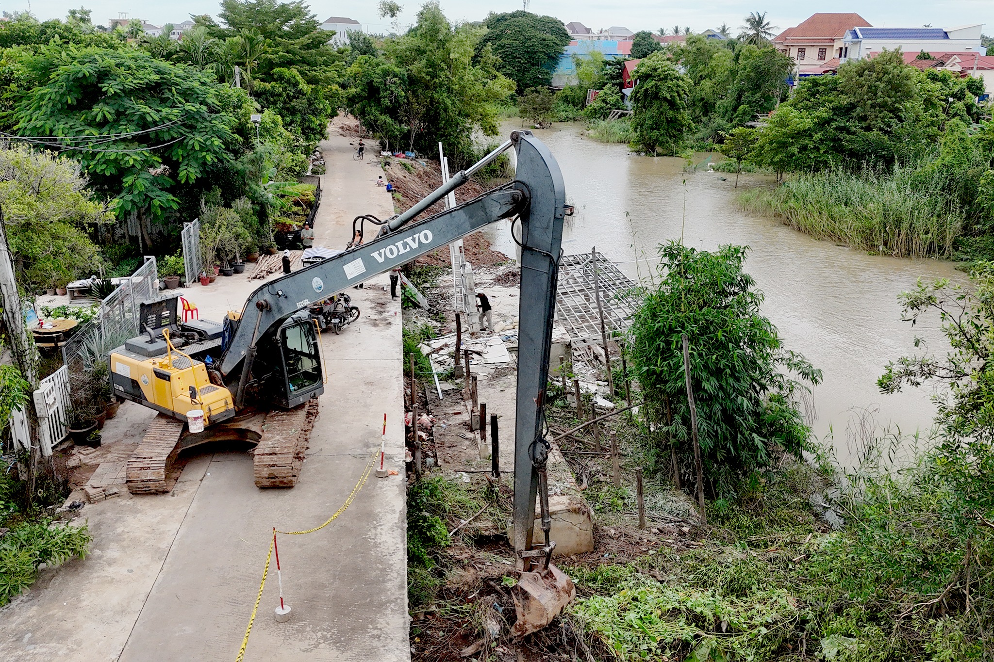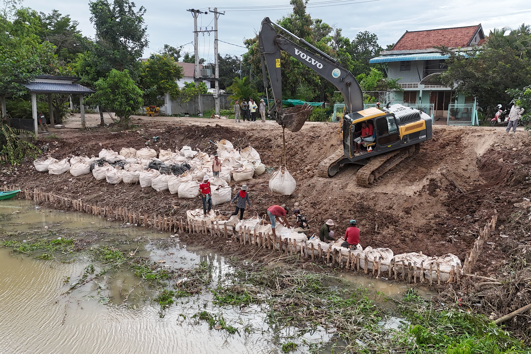 មន្រ្ដីជំនាញនាយកដ្ឋានធារាសាស្ដ្រកសិកម្ម ចុះជួលជុលបឋមច្រាំងស្ទឹងព្រែកត្នោត ដើម្បីទប់ស្កាត់កុំឱ្យបាក់បន្តទៀត