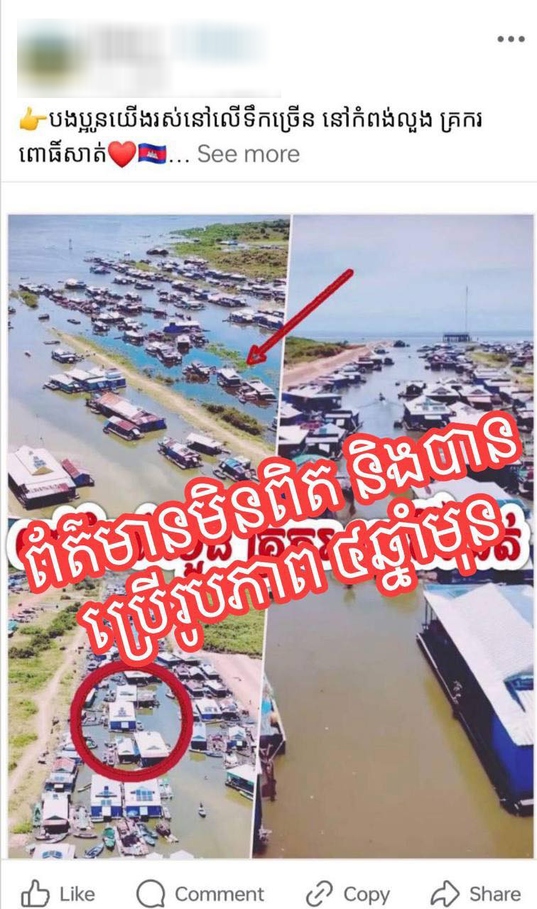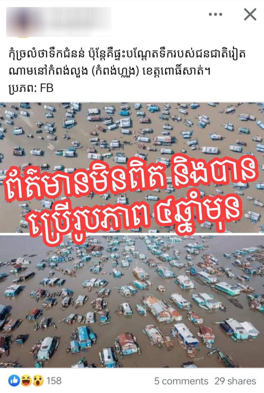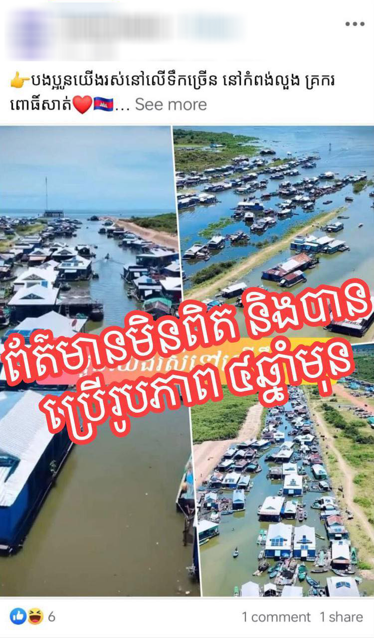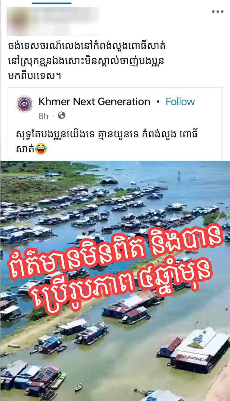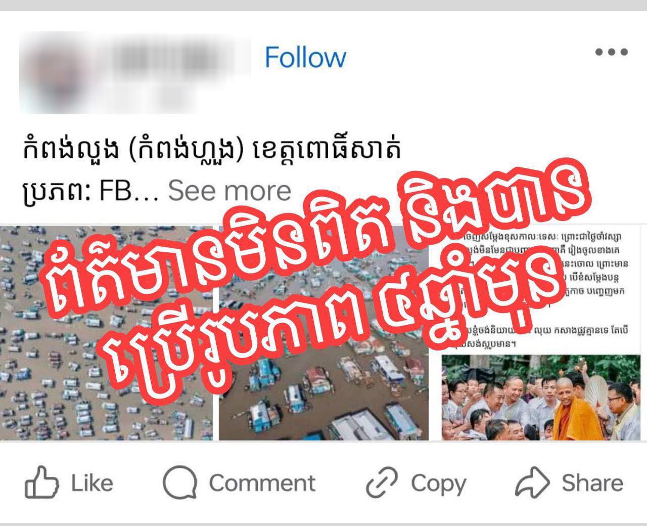 ខេត្តពោធិ៍សាត់៖ នៅថ្ងៃទី០២ ខែកញ្ញា ឆ្នាំ២០២៤ យោងតាមការចុះផ្សាយរបស់ រដ្ឋបាលខេត្តពោធិ៍សាត់ បានចេញសេចក្ដី បដិសេធព័ត៌មាន ផ្សព្វផ្សាយតាមបណ្តាញសង្គមរបស់គណនីហ្វេសបុក និងគណនីហ្វេសប៊ុកផេកមួយចំនួន ពាក់ព័ន្ធនឹងផ្ទះបណ្តែតទឹកនៅឃុំកំពង់លួង ស្រុកក្រគរ ខេត្តពោធិ៍សាត់ ដែលបានផ្សព្វផ្សាយព័ត៌មានមិនពិត ញុះញង់ មួលបង្កាច់ បង្ខូចកិត្តិយសថ្នាក់ដឹកនាំ ដោយបានយករូបភាពចាស់ៗកាលពី៤ឆ្នាំមុន មកធ្វើការផ្សព្វផ្សាយឡើងវិញ។