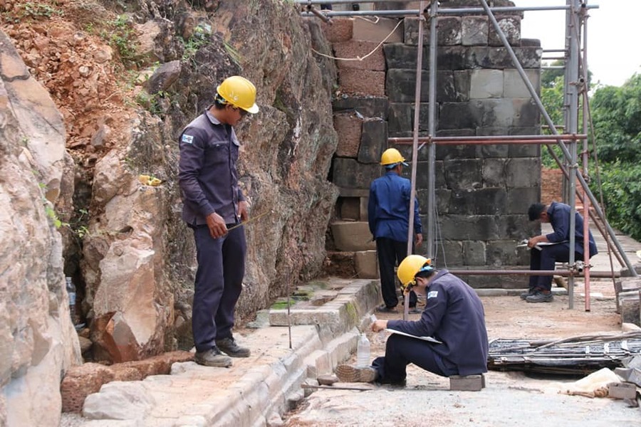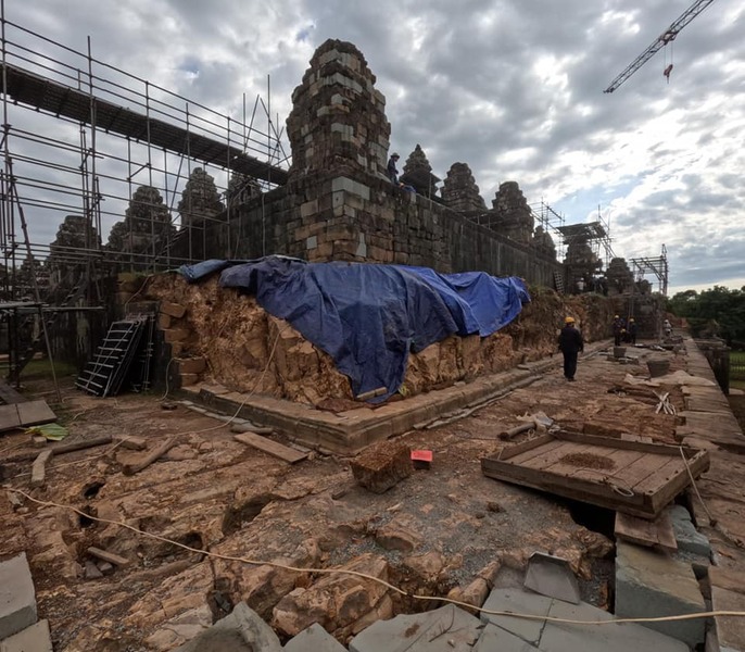 អ្នកជំនាញបន្តជួសជុលជញ្ជាំងរួតទី២ ប្រាសាទភ្នំបាខែង ដែលមាន​វ័យចំណាស់ជាងមួយពាន់ឆ្នាំ