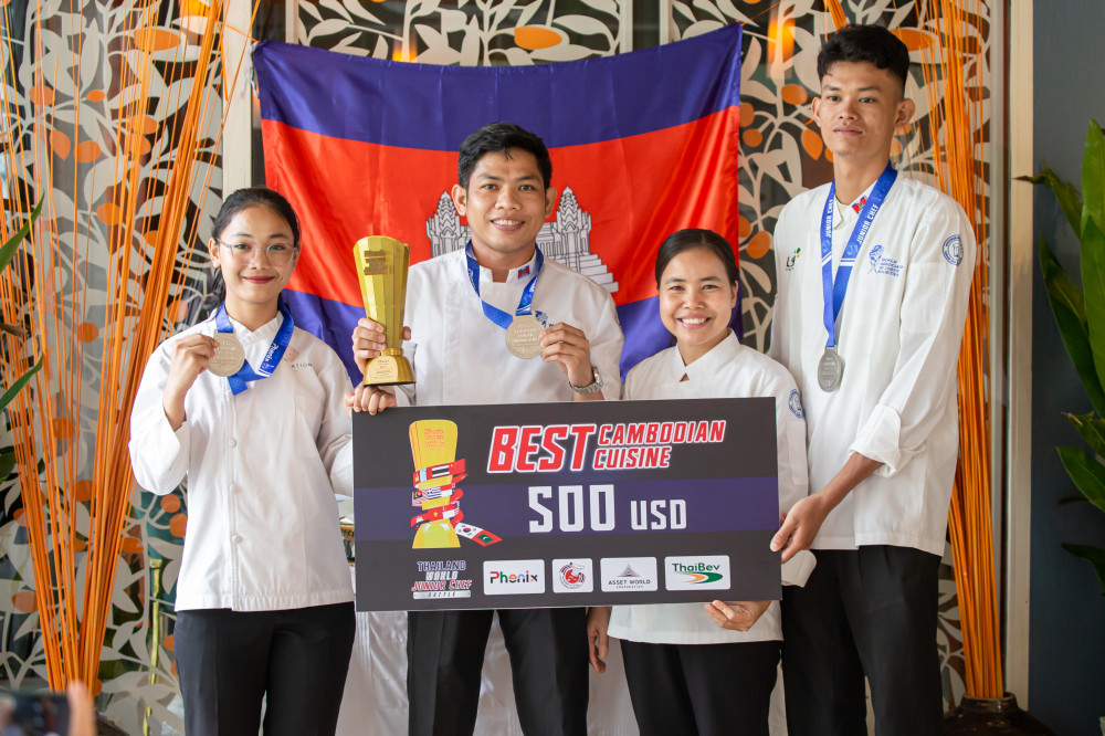 ចុងភៅវ័យក្មេងកម្ពុជាបីរូបមានមោទនភាព ដែលបាននាំយកមុខម្ហូបហហ្មុករបស់ខ្មែរ ទៅប្រកួតប្រជែងក្នុងកម្មវិធីលំដាប់ពិភពលោកទទួលបានចំណាត់ថ្នាក់លេខ១