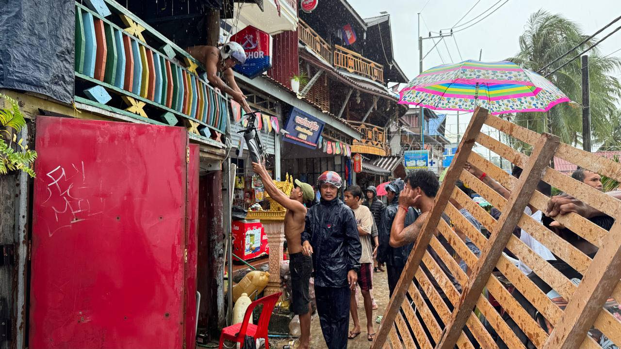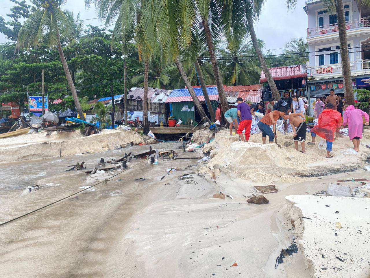 ជំនន់ទឹកភ្លៀង បានហូរច្រោះបាក់ស្រុតគ្រឹះផ្ទះប្រជាពលរដ្ឋអស់មួយចំនួន និងហូរច្រោះដាច់ផ្លូវ ឆ្នេរ ដួលរលំបង្គោលភ្លើង នៅតំបន់កោះរ៉ុងសន្លឹម