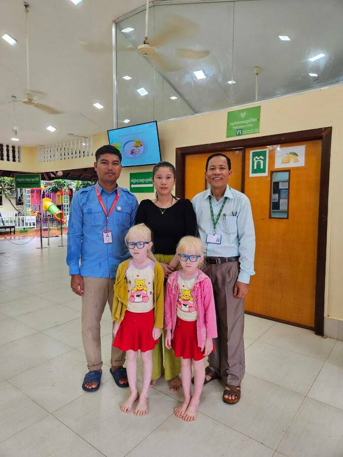 ខេត្តសៀមរាប៖ យោងតាមការចេញផ្សាយរបស់ ក្រសួងព័ត៌មាន បានឱ្យដឹងថា សម្តេចមហាបវរធិបតី ហ៊ុន ម៉ាណែត និងលោកជំទាវបណ្ឌិត ពេជ ចន្ទមុន្នី បានចាត់ក្រុមការងារគ្រូពេទ្យស្ម័គ្រចិត្តរបស់សម្តេចមហាបវរធិបតី ហ៊ុន ម៉ាណែត និងលោកជំទាវបណ្ឌិត ពេជ ចន្ទមុន្នី នាំក្មួយស្រីចំនួន ២នាក់ ជាបងប្អូនបង្កើត ឈ្មោះ បារាំង ហ្វាងមានមាន អាយុ ៤ ឆ្នាំ និង បារាំង ហ្វាងមីងមីង អាយុ ២ ឆ្នាំ រស់នៅក្រុងរុនតាឯក ខេត្តសៀមរាប មានជំងឺកង្វះសារធាតុពណ៌ (melanin) ពីកំណើត បង្កឱ្យស្បែក សក់ និងភ្នែក ឡើងពណ៍ស ព្រមទាំងមានបញ្ហាគំហើញភ្នែក យកមកទទួលការព្យាបាលនៅមន្ទីរពេទ្យកុមារអង្គរ ក្នុងខេត្តសៀមរាប ក្រោមការសម្របសម្រួលរបស់សមាគមគ្រូពេទ្យស្ម័គ្រចិត្តយុវជនសម្តេចតេជោ (TYDA) ។
