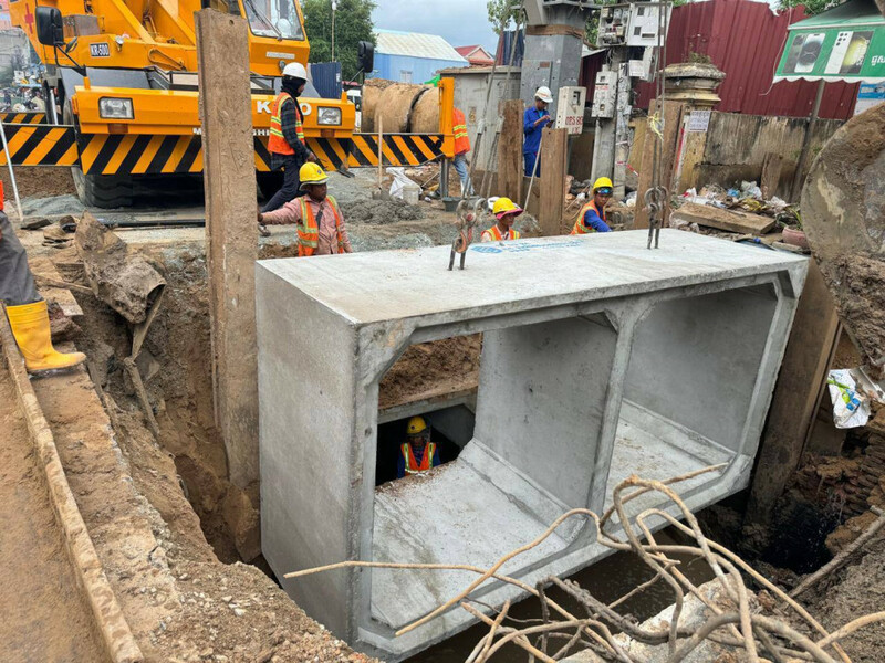 ជាមួយគ្នានេះដែរ ការដ្ឋានដាក់លូប្រអប់ទំហំ៤ម៉ែត្រx២ម៉ែត្រ នៅផ្លូវជាតិលេខ៤ ប្រវែង៥៦៥០ម៉ែត្រ ក្នុងសង្កាត់ចោមចៅ៣ ខណ្ឌពោធិ៍សែនជ័យ និងគម្រោងស្ថាបនាជញ្ជាំងបេតុងនៃប្រឡាយបារាំង ចាប់ពីផ្លូវមហាវិថីស៊ីជីនពីង ដល់អាកាសយានដ្ឋានអន្តរជាតិភ្នំពេញ ដែលបាន និងកំពុងអនុវត្តដោយក្រុមហ៊ុន Precast Plantsនេះ ក៏ស្ថិតក្នុងគម្រោងផែនការវិនិយោគហេដ្ឋារចនាសម្ព័ន្ធ ប្រព័ន្ឋលូ និងប្រព័ន្ធរំដោះទឹកសម្រាប់បញ្ចៀសការជន់លិចក្នុងភូមិសាស្ត្ររាជធានីភ្នំពេញផងដែរ៕
