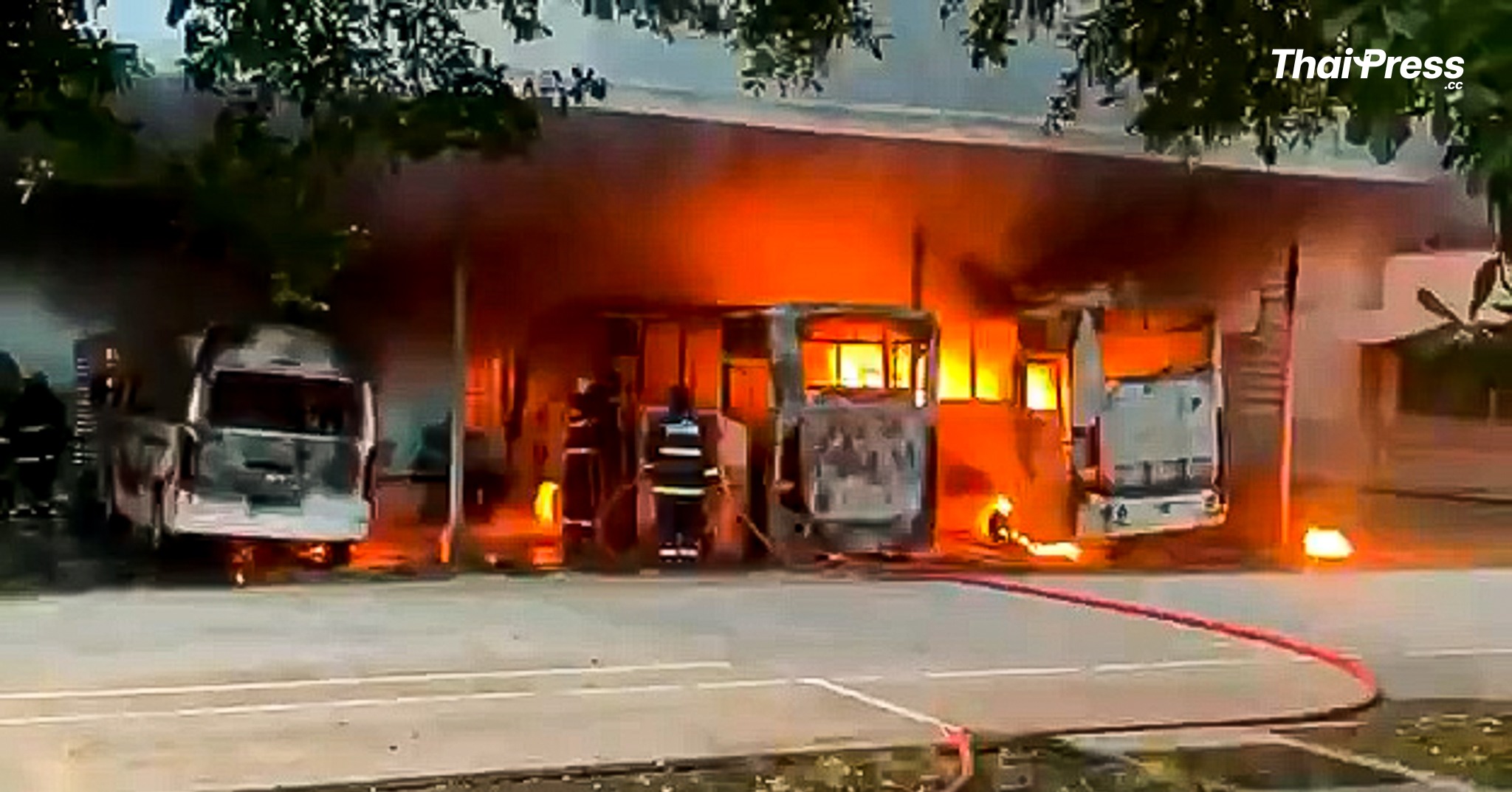 រថភ្លើងអគ្គិសនីខ្នាតតូចដែលកំពុងដាក់បញ្ចូលភ្លើងមួយគ្រឿងបានឆេះ និងបង្កឱ្យមានអគ្គីភ័យឆាបឆេះយ៉ាងនៅសាកលវិទ្យាល័យមួយកន្លែងក្នុងប្រទេសថៃ