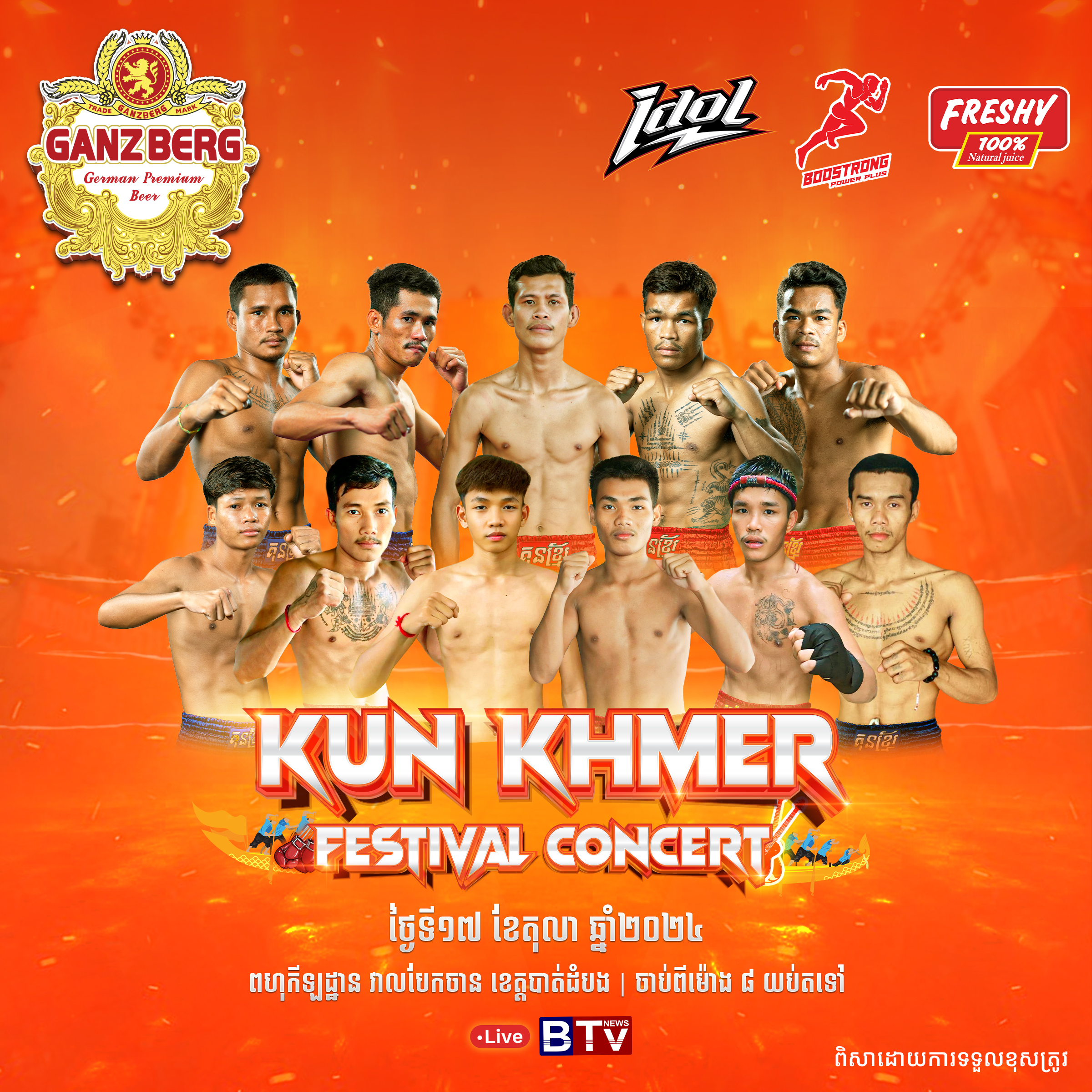 សង្វៀន GANZBERG KUN KHMER FESTIVAL CONCERT នាំកំពូលអ្នកប្រយុទ្ធគុនខ្មែរជាច្រើនរូបមកចួបគ្នាលើសង្វៀនគុនខ្មែរតែមួយដ៏អស្ចារ្យលើទឹកដីខេត្តបាត់ដំបង
