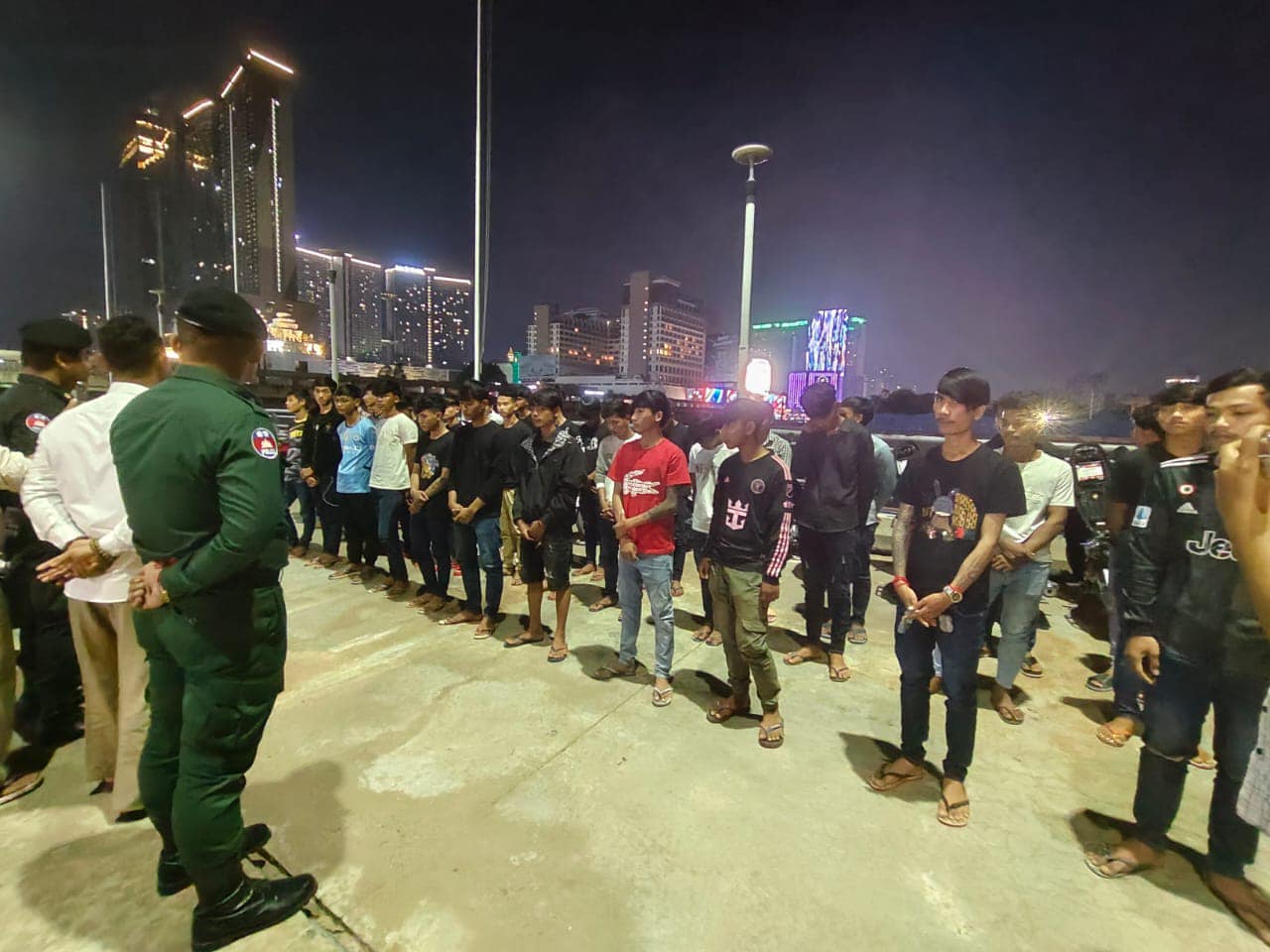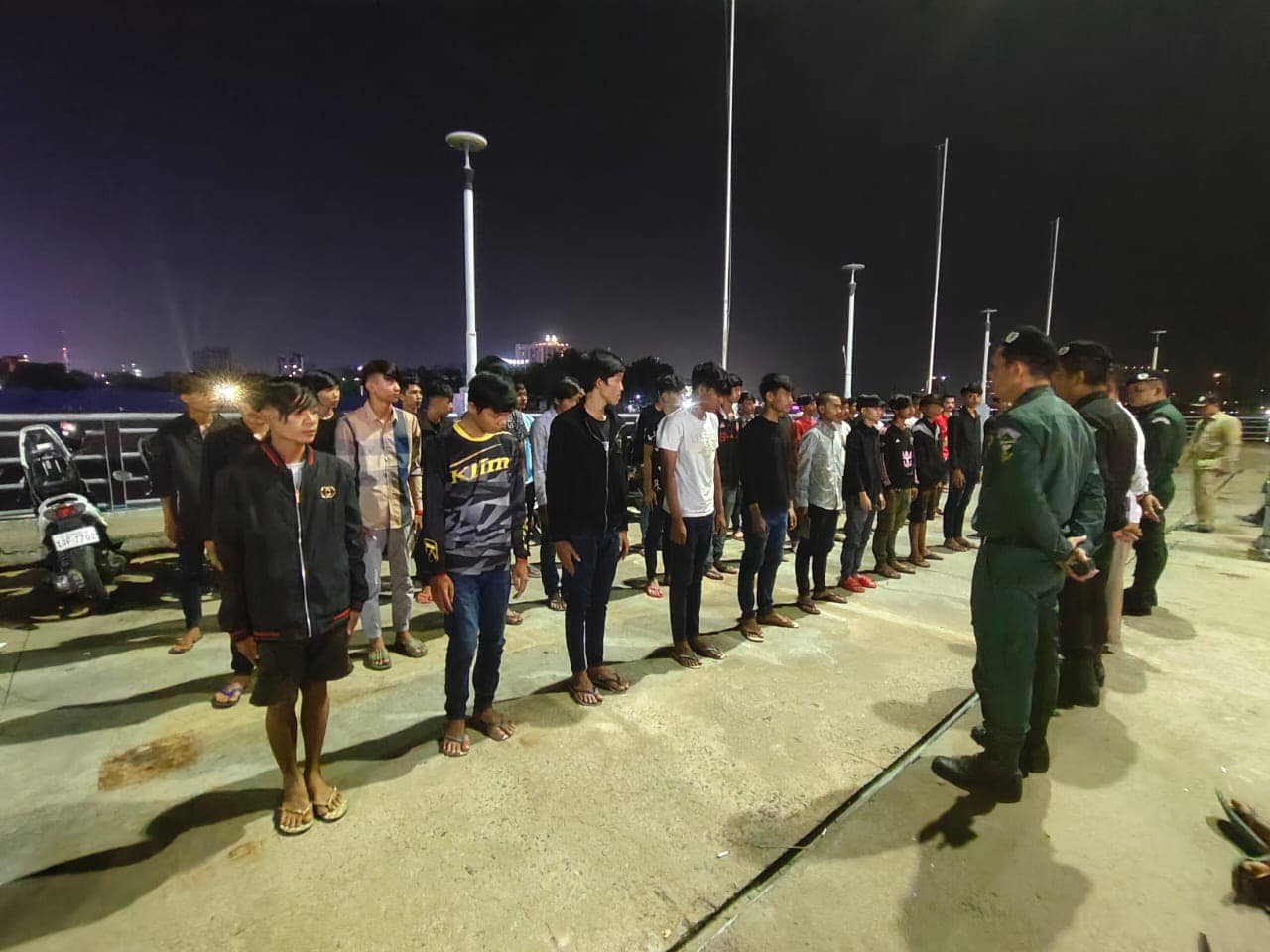 (ភ្នំពេញ)៖ នៅយប់ថ្ងៃទី២៦ ខែតុលា ឆ្នាំ២០២៤ យោងតាមការចុះផ្សាយរបស់ ស្នងការដ្ឋាននគរបាលរាជធានីភ្នំពេញ បានឱ្យដឹងថា អធិការដ្ឋាននគរបាលខណ្ឌចំការមន ចុះទប់ស្កាត់ និងណែនាំយុវជន២ក្រុម មានគ្នារហូតដល់ទៅជាង ៤០នាក់ ជាមួយនឹងម៉ូតូ ១៩គ្រឿងដើរលេងមិនចូលផ្ទះផ្តុំគ្នាយប់អធ្រាត្រ ក្រោយពីបានត្រួតពិនិត្យរួចធ្វើការអប់រំណែនាំនិងឲ្យត្រឡប់ទៅលំនៅដ្ឋានវិញ៕