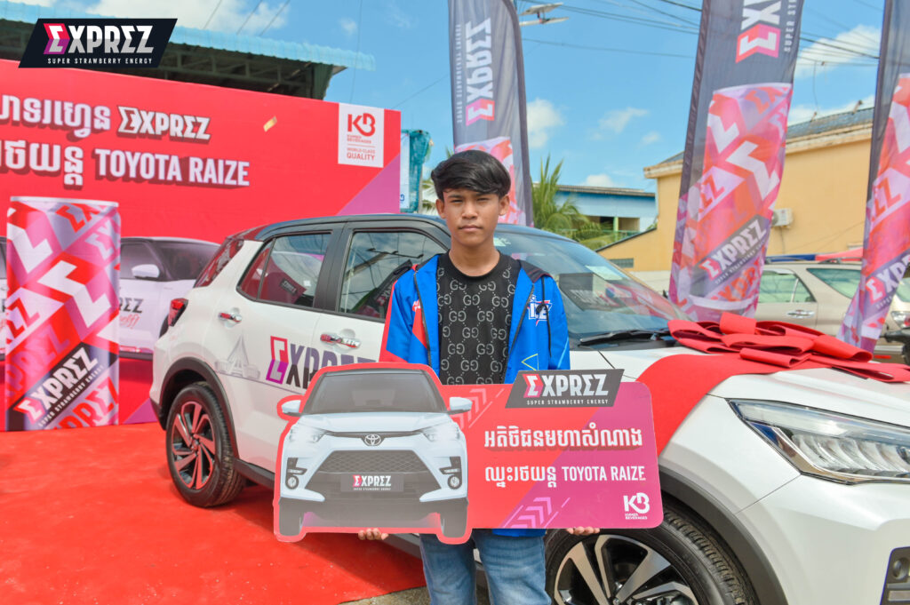 • រថយន្ត Toyota Raize ចំនួន ២គ្រឿង ពីភេសជ្ជៈ អ៊ិចប្រេស រសជាតិស្រ្តប៊ែរី ចែកជូនអតិថិជនមហាសំណាងចំនួន ២រូប ដែលមានឈ្មោះ៖ ១. មុជ ស្រេន ខេត្តកំពង់ស្ពឺ និង ទី២. ហេង ចាន់ឌី ខេត្តកំពង់ធំ។