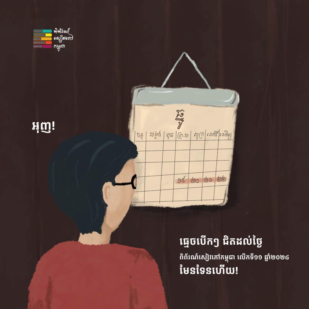 (ភ្នំពេញ)៖ កម្មវិធីពិព័រណ៍សៀវភៅកម្ពុជា បានត្រលប់មកវិញ និងធ្វើឡើងជាបន្តបន្ទាប់ប្រកបដោយជោគជ័យទទួលបានការគាំទ្រយ៉ាងពេញទំហឹងពីសំណាក់ស្ថាប័នរដ្ឋ ស្ថាប័នឯកជន អង្គការ វិទ្យាស្ថាន យុវជន និងប្រជាពលរដ្ឋខ្មែរជាច្រើនកុះករ ហើយនៅឆ្នាំ២០២៤នេះ ជាឆ្នាំទី១១នៃពិព័រណ៍សៀវភៅកម្ពុជា។