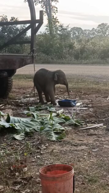 កូនសត្វដំរីព្រៃ(ឈ្មោល) ១ក្បាល អាយុប្រហែល០៥ខែ ត្រូវបានជួយសង្គ្រោះនៅដែនជម្រកសត្វព្រៃលំផាត់