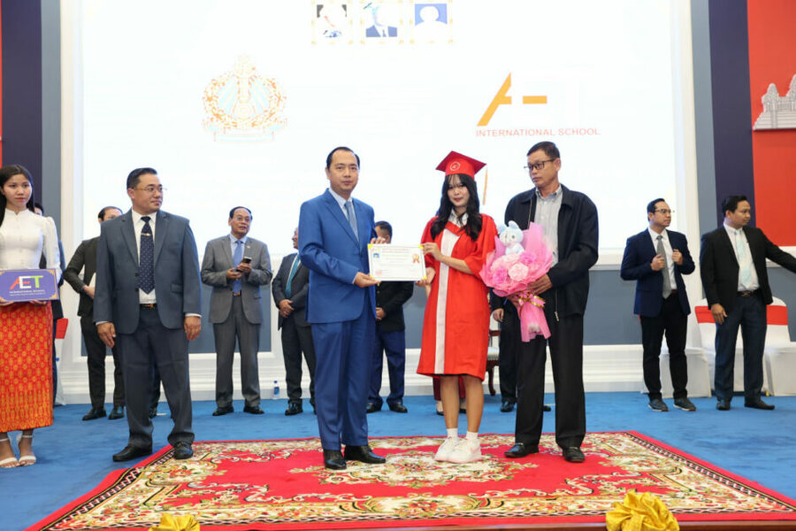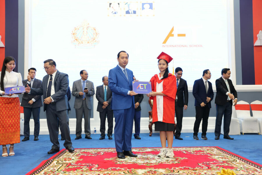 ឯកឧត្តម គុយ ម៉េង អគ្គនាយកសាលា AET អន្តរជាតិ បានជម្រាបជូនពីប្រវត្តិសង្ខេបនៃសាលានេះ ត្រូវបានបង្កើតឡើងនៅថ្ងែទី២០ ខែសីហា ឆ្នាំ ២០០០ ដែលមានឈ្មោះដើមជា មជ្ឍមណ្ឌល KIC (Khmer International Centre) ដោយមានការគាំទ្រពីសំណាក់មាតា បិតាសិស្សនិងការជឿទុកចិត្តលើសេវាកម្មក៏ដូចជាគុណភាពអប់រំ នៅឆ្នាំ២០០៣ KIC បានប្រែក្លាយទៅជាវិទ្យាស្ថាន អេអ៊ីធី (AMERICAN ENGLISH INSTITUTE ) ហើយនៅកាលនោះ អេ.អ៊ី.ធី បានជ្រកក្រោមការជួលអាគារសិក្សារបស់គេ។ ដោយឈរលើគុណភាព និងការប្រកាន់ខ្ជាប់នៅ វិន័យ និងចក្ខុវិស័យវែងឆ្ងាយជាមួយគោលដៅច្បាស់លាស់នៅថ្ងៃទី១៥ ខែមេសា ឆ្នាំ២០១០ អេ.អ៊ី.ធី បានមានលទ្ធភាពទិញអាគារផ្ទាល់ខ្លួន។ ដោយសារចំនួនសិស្សមានការកើនឡើងជាលំដាប់ពីរមួយឆ្នាំទៅមួយឆ្នាំ រហូត ៣ ៤១១នាក់ និងមានការសំណូមពរពីមាតាបិតាសិស្ស នៅថ្ងៃទី២១ ខែមេសា ឆ្នាំ២០២០ អេ.អ៊ី.ធី បានពង្រីកសាខាថ្មីបន្ថែមមួយទៀត។ ជាគម្រោងបន្ទាប់នៅថ្ងៃទី០៦ ខែមីនា ឆ្នាំ២០២៥ ខាងមុខនេះ អេ.អ៊ី.ធី នឹងធ្វើពិធីបញ្ចុះបឋមសិលាសាងសង់សាលាថ្មីមួយទៀតដើម្បីបំពេញទិសដៅឲ្យស្របទៅតាមគោលនយោ បាយរបស់រាជរដ្ឋាភិបាល ដែលមានសម្តេចអគ្គមហាសេនាបតីតេជោ ហ៊ុន សែននិងសម្តេចមហាបរវរធិបតីហ៊ុន ម៉ាណែត ជានាយករដ្ឋមន្ត្រី ដែលបានដាក់ចេញនូវវិស័យអប់រំជាវិស័យអទិភាពចម្បង។ សិស្សានុសិស្សដែលបានទទួលវិញ្ញាបនបត្រ និងលិខិតសរសើរនាឱកាសនេះ មានចំនួន ៤០៣នាក់ ៕