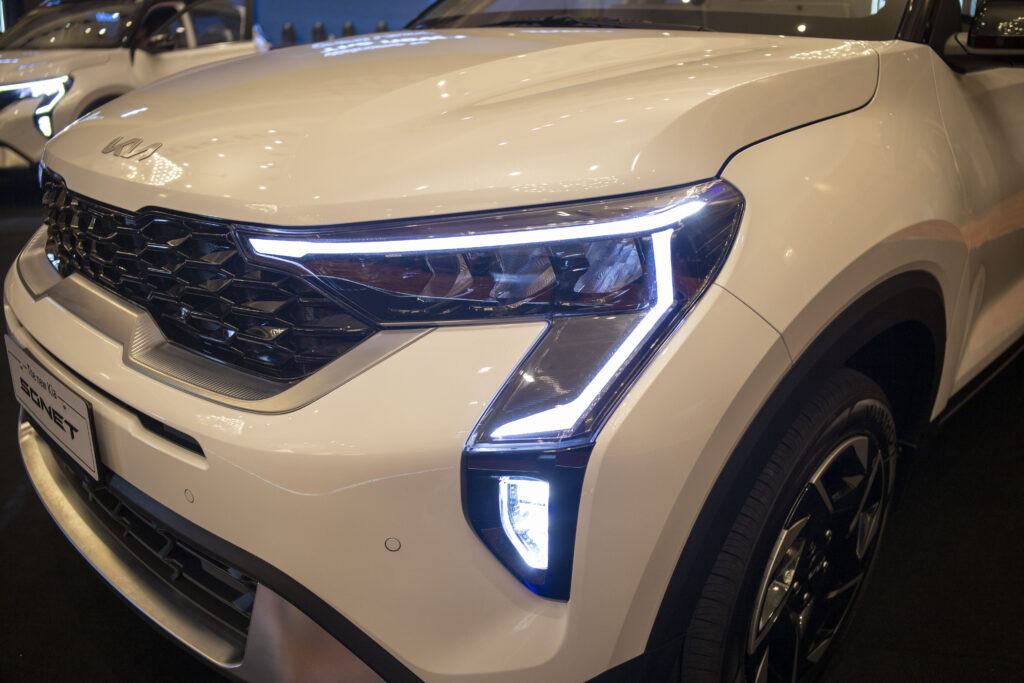 Kia Sonet ជារថយន្ត SUV រចនាឡើងប្រកបដោយភាពទាក់ទាញ ជាមួយចង្ក្រៀងខាងមុខភ្លឺច្បាស់ ម៉ូតទាន់សម័យ។ ភ្លើង LED ជាប្រភេទស្ព័ត ជួយបន្ថែមសម្រស់ឱ្យ Kia Sonet កាន់តែស្រស់ស្អាត និង ទាក់ទាញ នៅពេលបើកបរនៅលើដងផ្លូវ។