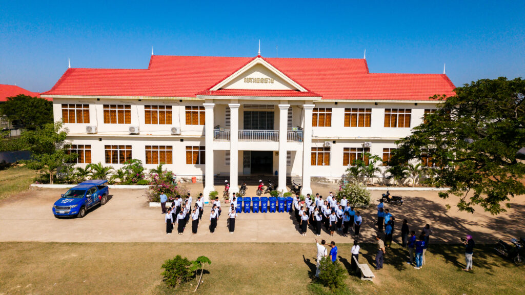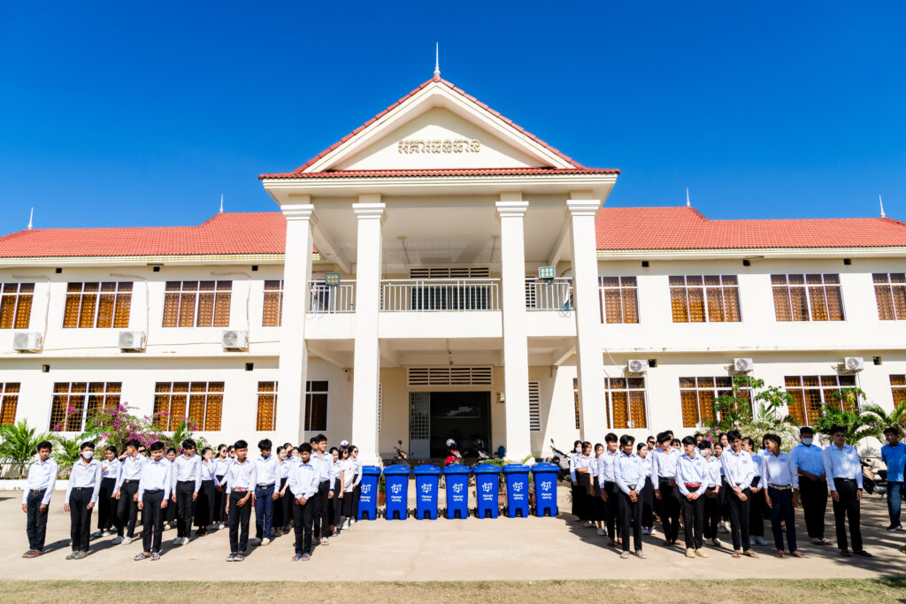 លើកកម្ពស់កាយវិការថែរក្សាបរិស្ថានស្អាត ខ្មែរ ប៊ែវើរីជីស ឧបត្ថម្ភធុងសំរាមចំនួន ១៣៧ ធុង ជូនដល់ ២៣ សាលារៀន