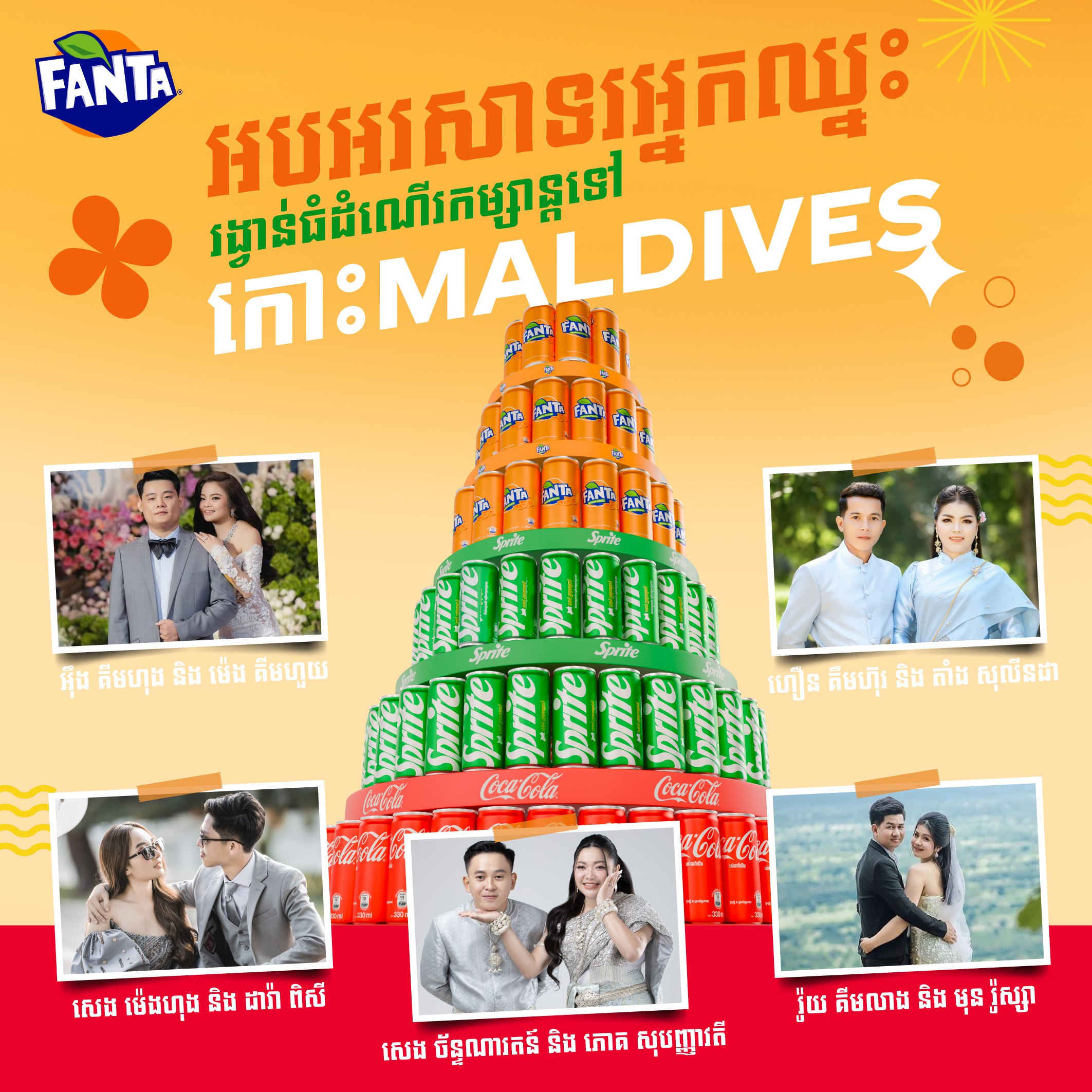 ហ្វាន់តា និងស្ព្រៃ មានក្ដីសោមនស្សរីករាយសូមប្រកាសឈ្មោះអតិថិជនឈ្នះរង្វាន់អាពាហ៍ពិពាហ៍ រួមមាន៖