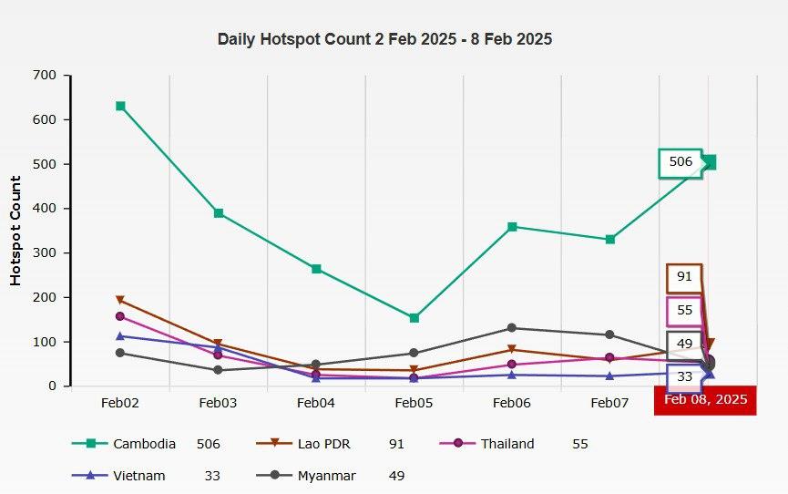គុណភាពខ្យល់នៅកម្ពុជា សម្រាប់ថ្ងៃទី៨ ខែកុម្ភៈ ចាប់ពីម៉ោង ៦ល្ងាច ដល់ម៉ោង ៦ព្រឹកថ្ងៃទី៩ ខែកុម្ភៈ ឆ្នាំ២០២៥ គិតជាសន្ទស្សន៍គុណភាពខ្យល់គឺ “ល្អ”