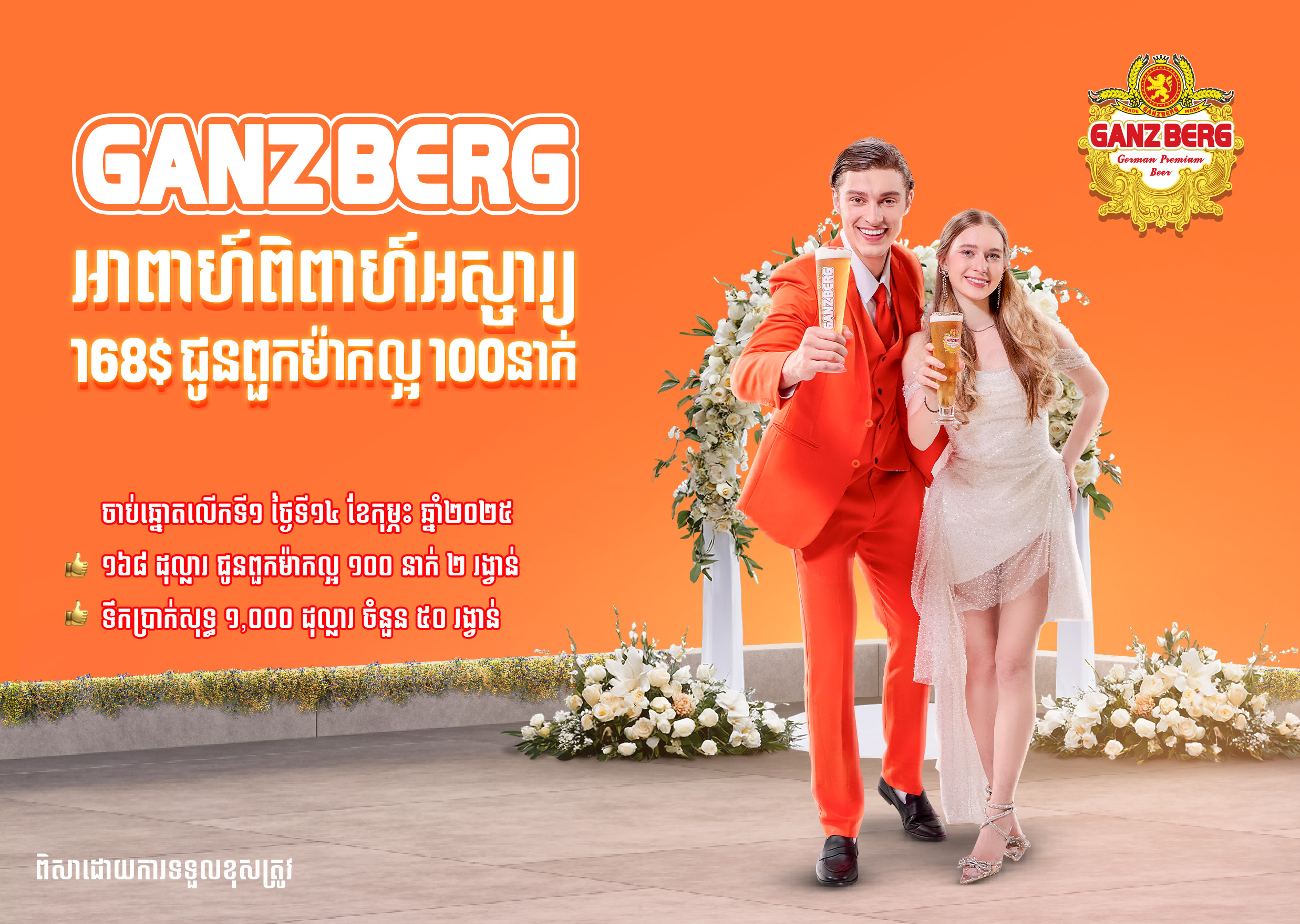 ត្រៀមៗៗ! សូមជម្រាបជូនពុកម៉ែ បងប្អូនទាំងអស់ ជាពិសេសគូស្វាមីភរិយាថ្មី ដែលបានជ្រើសរើស ស្រាបៀរ ហ្គេនស៍បឺគ ដាក់ក្នុងកម្មពិធីមង្គលការ ខួបកំណើត ឡើងគេហដ្ឋានថ្មី និងកម្មពិធីផ្សេងៗ អោយបានជ្រាបថា ក្រុមហ៊ុន នឹងធ្វើការចាប់ឆ្នោតផ្សងសំណាង ជូនដល់អតិថិជន ក្នុងកម្មវិធី អាពាហ៍ពិពាហ៍ អស្ចារ្យ ១៦៨ដុល្លារ ជូនពួកម៉ាកល្អ ១០០នាក់។