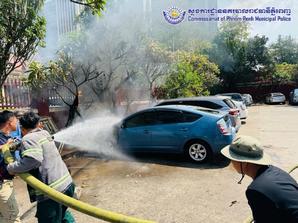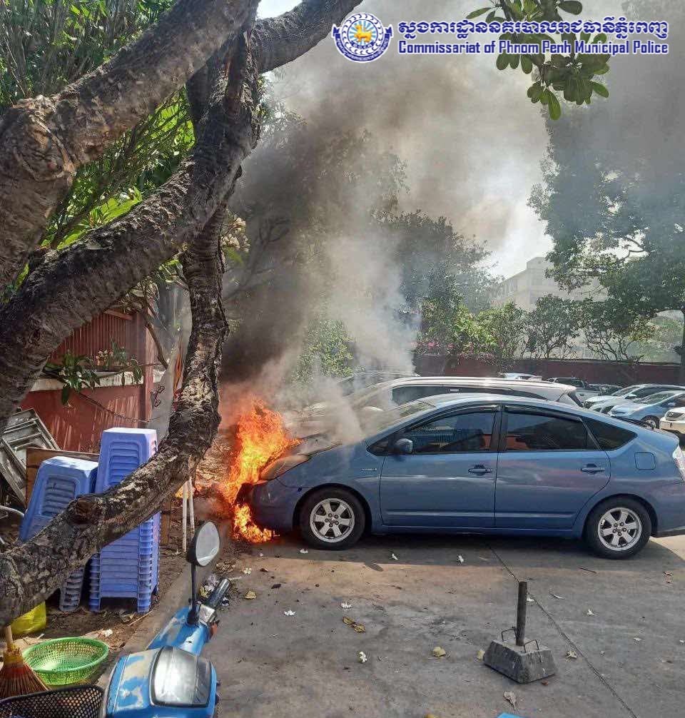 ឆេះរថយន្ត Prius នៅផ្លូវរដ្ឋសភា ដោយសារតែឆ្លងប្រព័ន្ធភ្លើង បង្កឱ្យឆេះរាលដល់រថយន្តមួយគ្រឿងទៀតដែលចតនៅក្បែរគ្នា