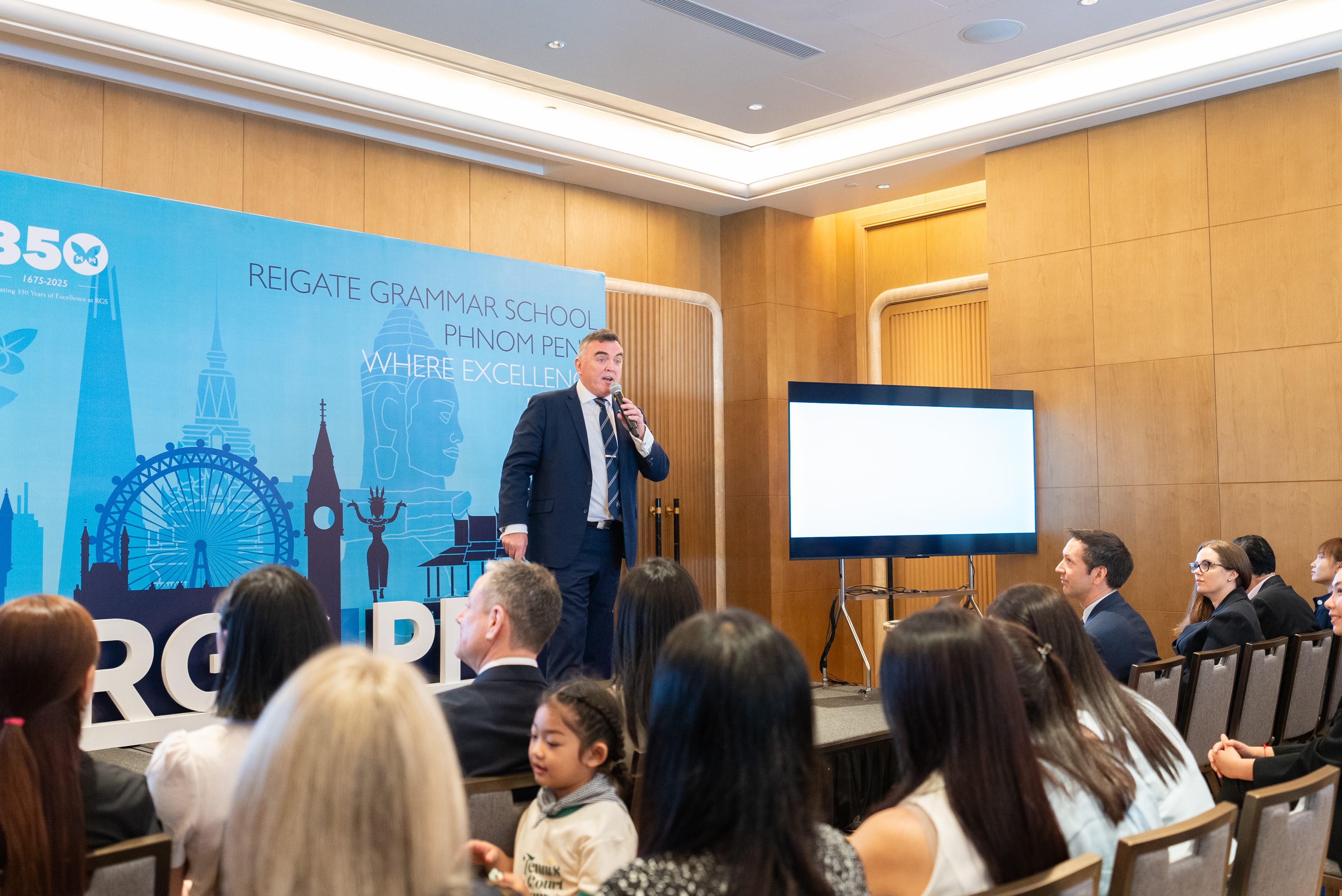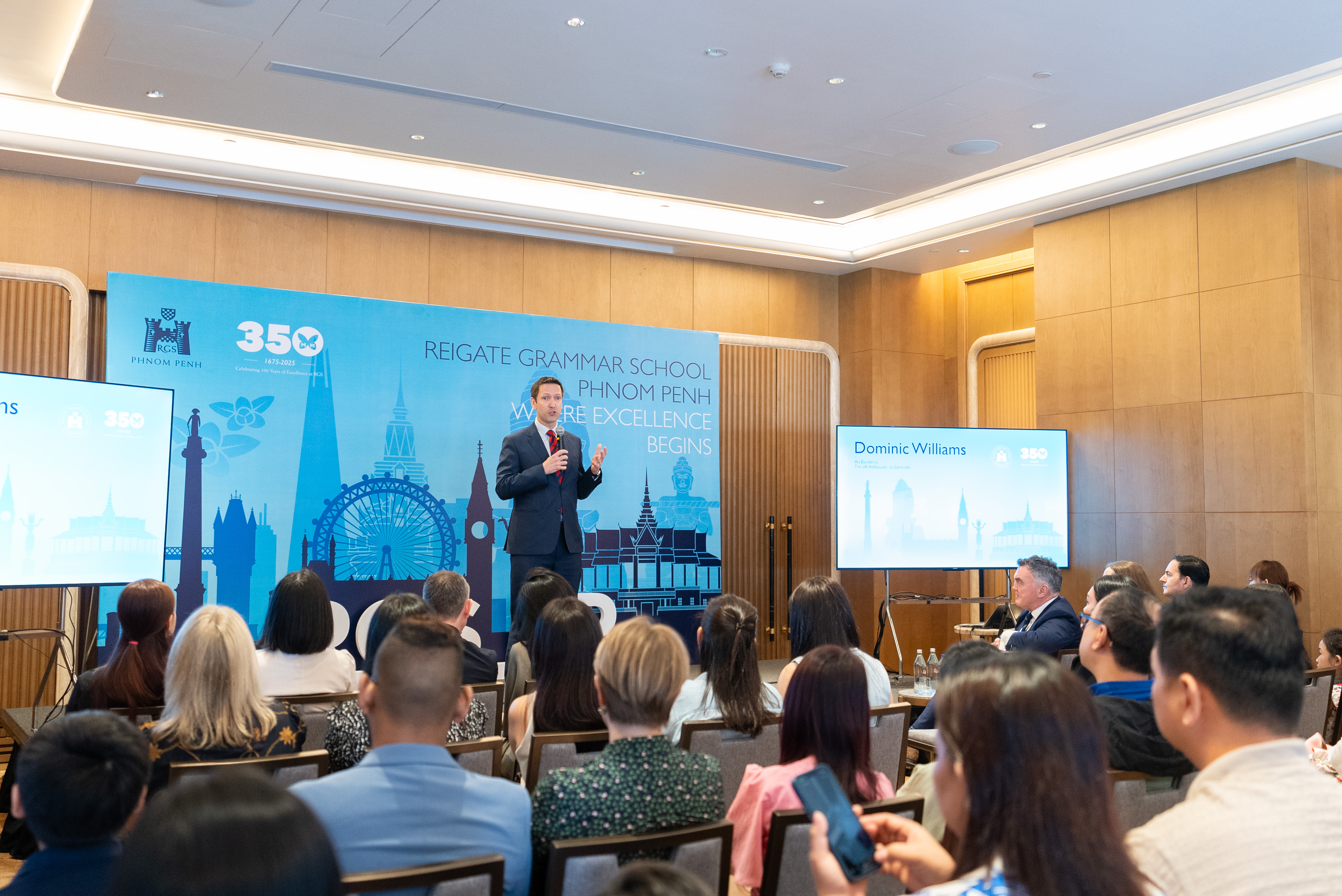 រៃហ្គេត ហ្គ្រេមម័រ ស្គូល ភ្នំពេញ បានប្រារព្ធកម្មវិធីសម្ពោធយ៉ាងអធឹកអធមនៅសណ្ឋាគារ Shangri-la Phnom Penh នាថ្ងៃទី 22 កុម្ភះ ដោយមានការចូលរួមជាកិត្តិយសពីលោកឯកអគ្គរាជទូតអង់គ្លេស និងអាណាព្យាបាលសិស្សជាច្រើនរូប។ លើសពីនេះ ក៏មានការចូលរួមពីសំណាក់នាយកសាលា និង លោកគ្រូ អ្នកគ្រូជាច្រើនរូបពីចក្រភពអង់គ្លេស។