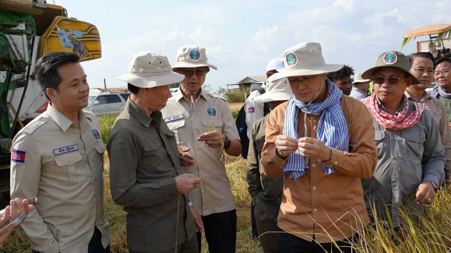 (កំពង់ធំ)៖ យោងតាមការចុះផ្សាយរបស់ ក្រសួងព័ត៌មាន បានឱ្យដឹងថា នៅថ្ងៃទី២២ ខែកុម្ភៈ ឆ្នាំ២០២៥ ឯកឧត្តម ឌិត ទីណា រដ្ឋមន្ត្រីក្រសួងកសិកម្ម រុក្ខាប្រមាញ់ និងនេសាទ និងថ្នាក់ដឹកនាំ បានអញ្ជើញចុះពិនិត្យការច្រូតស្រូវសែនក្រអូប០១ និងជួបសំណេះសំណាលជាមួយសហគមន៍កសិកម្មទំនើបអភិវឌ្ឍន៍ដំណាំស្រូវកំពង់ធំ នៅភូមិរលស់ សង្កាត់ស្រយ៉ូវ ក្រុងស្ទឹងសែន ខេត្តកំពង់ធំ។