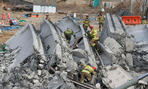 កូរ៉េខាងត្បូង៖ យ៉ាងហោចណាស់មានមនុស្សចំនួន ៤នាក់បានស្លាប់បាត់បង់ជីវិតនៅក្នុងហេតុការណ៍បាក់ផ្លូវ Highway ដែលកំពុងស្ថិតនៅក្រោមការសាងសង់មួយកន្លែងនៅក្នុងប្រទេសកូរ៉េខាងត្បូង នេះបើយោងតាមការចុះផ្សាយរបស់បណ្តាញសារព័ត៌មាន The Strait Time នៅក្នុងថ្ងៃអង្គារ ទី២៥ ខែកុម្ភៈ។ នៅក្នុងចំណោមជនរងគ្រោះដែលបានស្លាប់បាត់បង់ជីវិតទាំង ៤នាក់ គឺមានជនរងគ្រោះចំនួន ២នាក់ជាជនជាតិចិន។